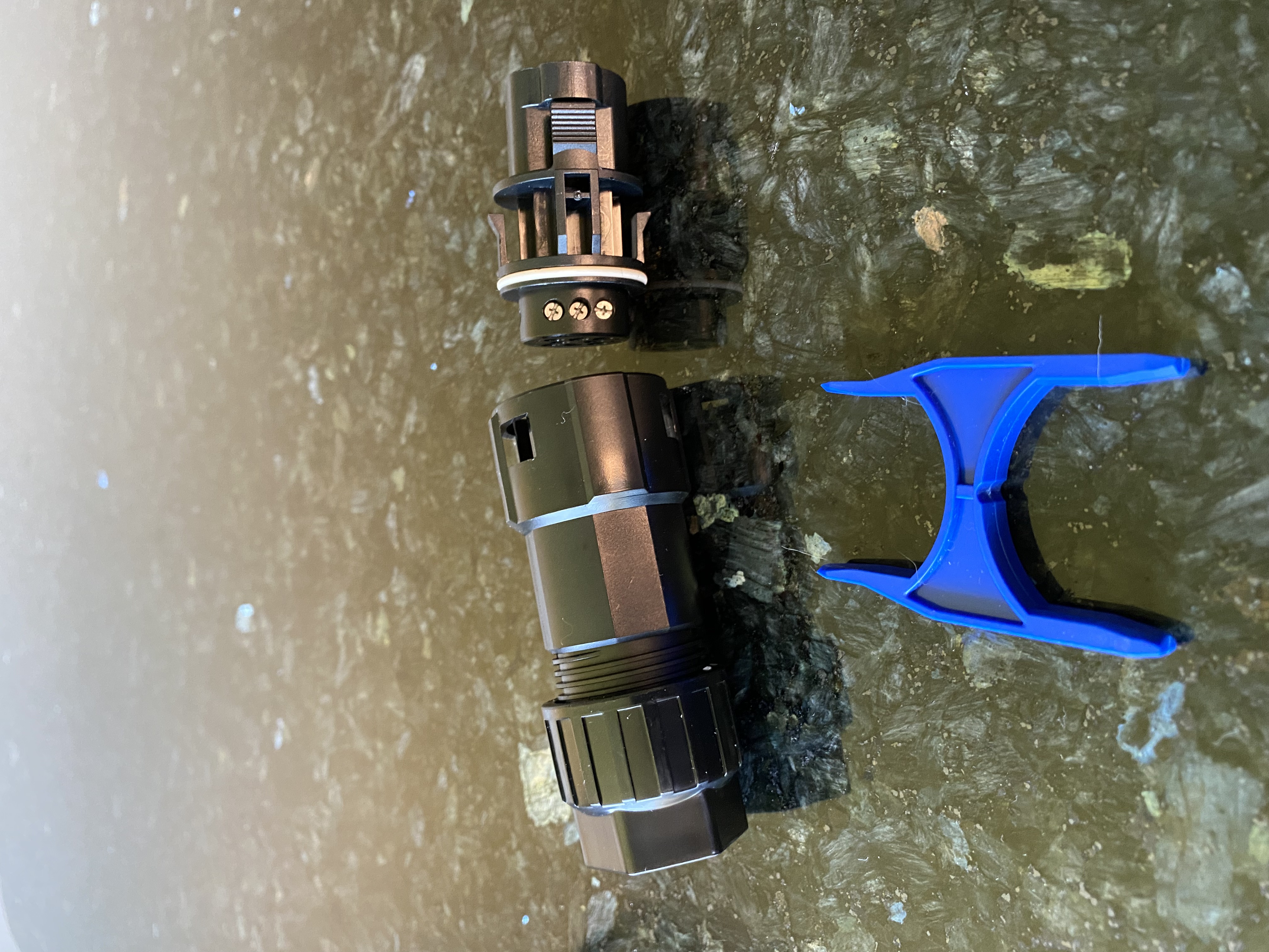 Dave Foster wrote: Wed Apr 19, 2023 2:52 pm The inverter comes with a plastic tool that makes this easy, it’s basically plastic ‘U’ shaped tongs that push through the slots on the side of the connector and push the clips back - you can achieve the same with a medium sized pair of flat bladed screwdrivers pushed in the slots. The connector then comes about but has a bit of resistance from a rubber washer that stops water getting in.