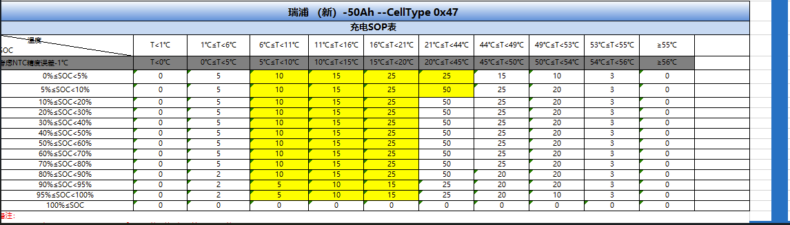 Based on the BMS battery charge current grid you provided, I would be operating in the range of 50A 21<T<44 and 10%<SoC<90%.
