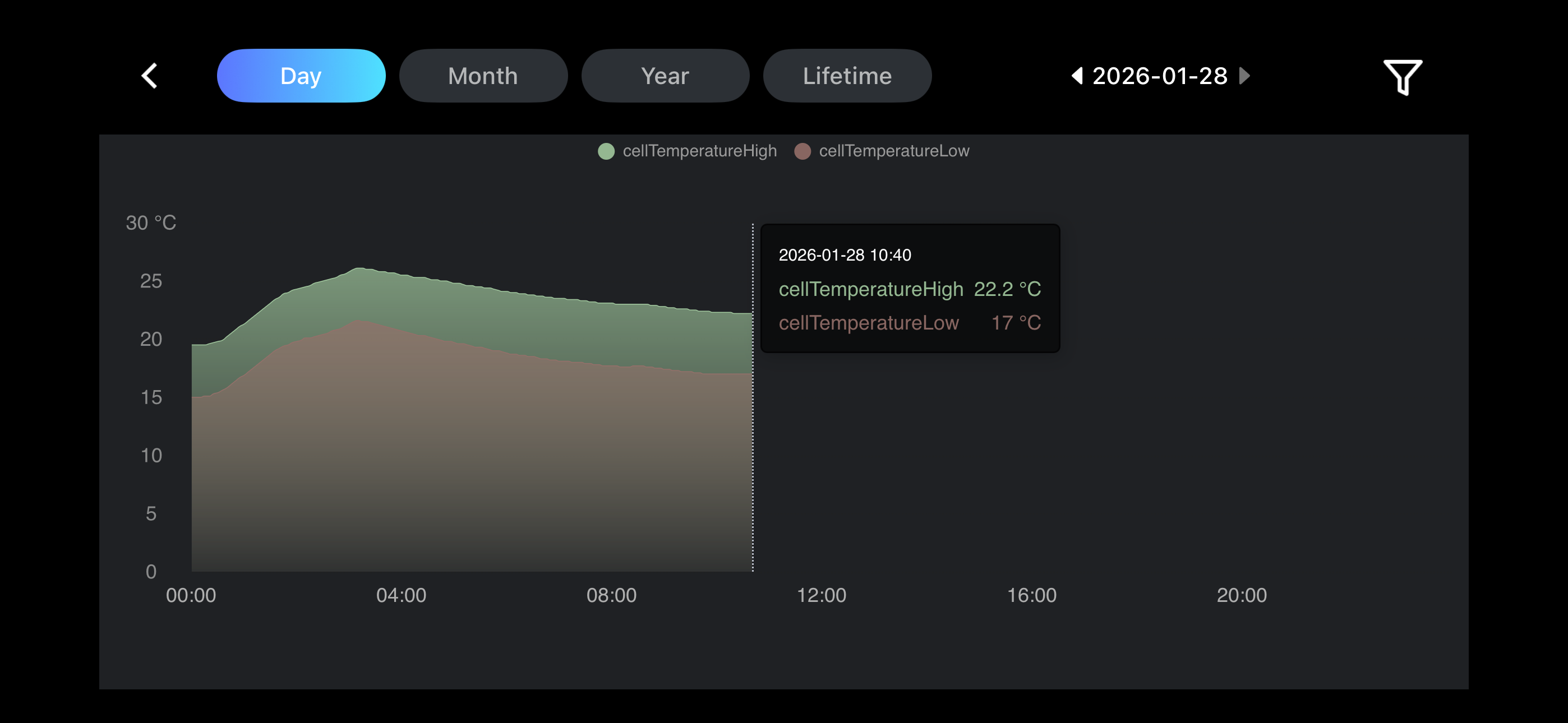 Thanks for that. It's reassuring to know.CDubbs wrote: ↑Tue Jan 27, 2026 6:06 pm Just to add, having an heated EP11 outside, once I built a 50mm insulated box around it, the lowest cell temp has never dropped below 10C, and the heater has not had to kick in.