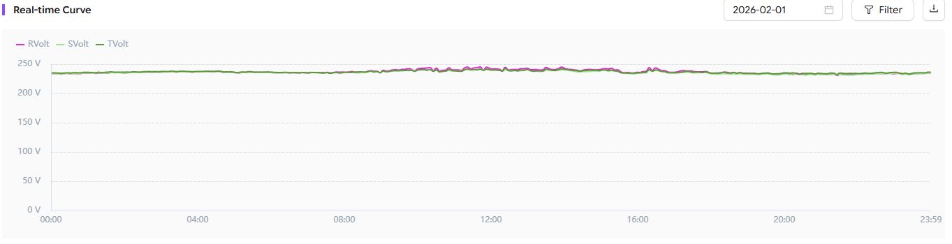The Rvolt,Svolt & Tvolt graphs indicate no dips or surges.