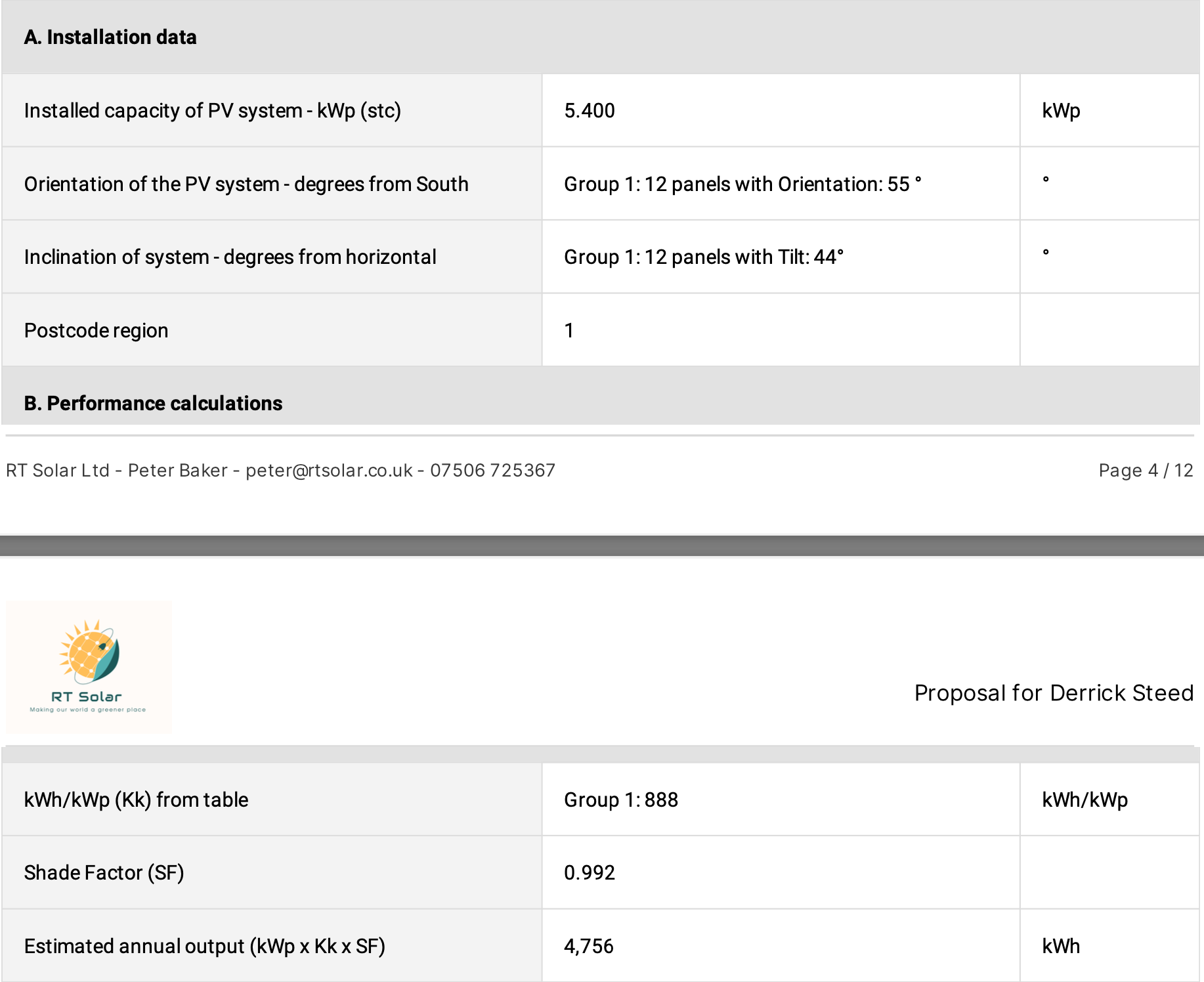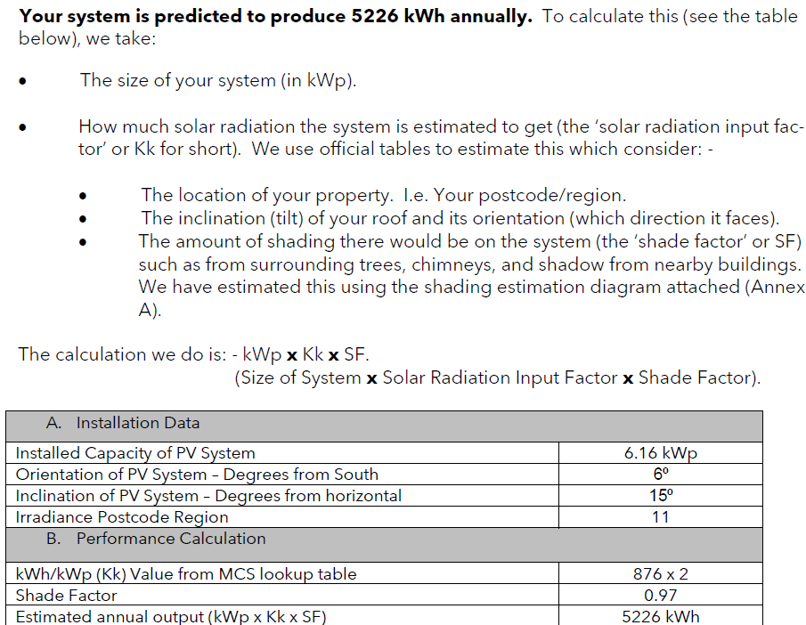 I was looking to compare your possible output annually 4756kWh compared to mine of 5226kWh, and this gives a 91% rough comparison.