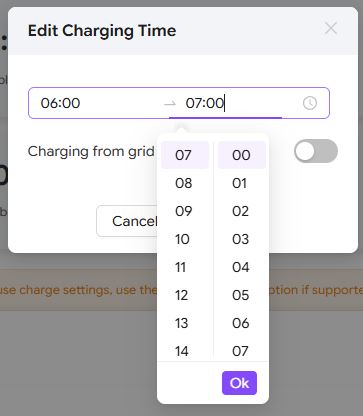 Now that we have a new energy supplier, I have set this time (under settings > work mode > charge time) to 23:30-05:30. I have done this on the inverter itself.