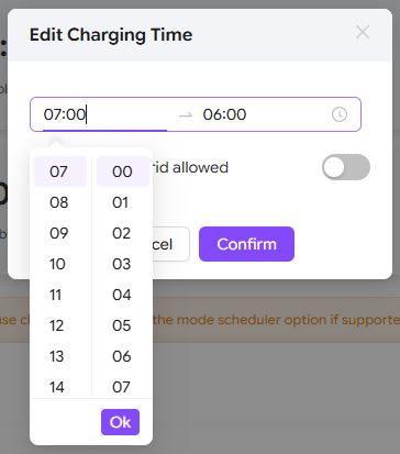 Edit: Bum! Now it has just updated when viewed on a different PC, but the enable slider is in the off position (even though it is enabled in the inverter). When I move the slider and submit, I get the message "Parameters do not meet expectations. Please reenter". Is this because the start time looks to be after the end time?