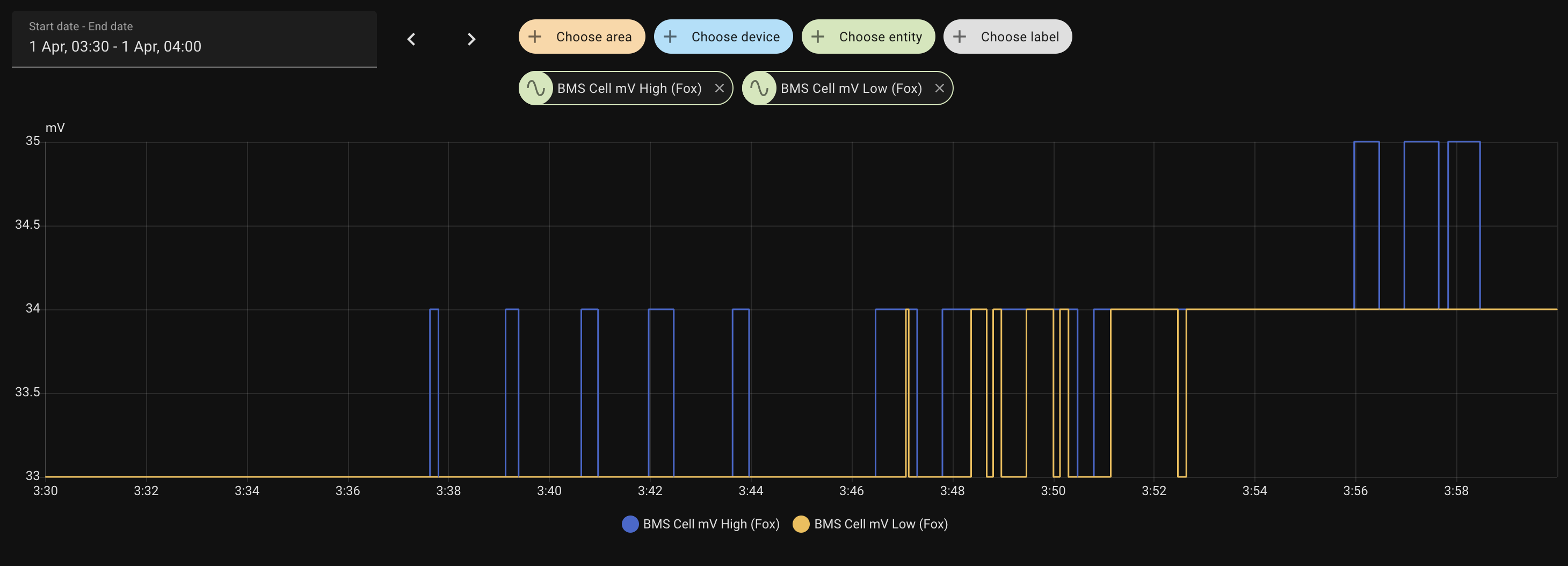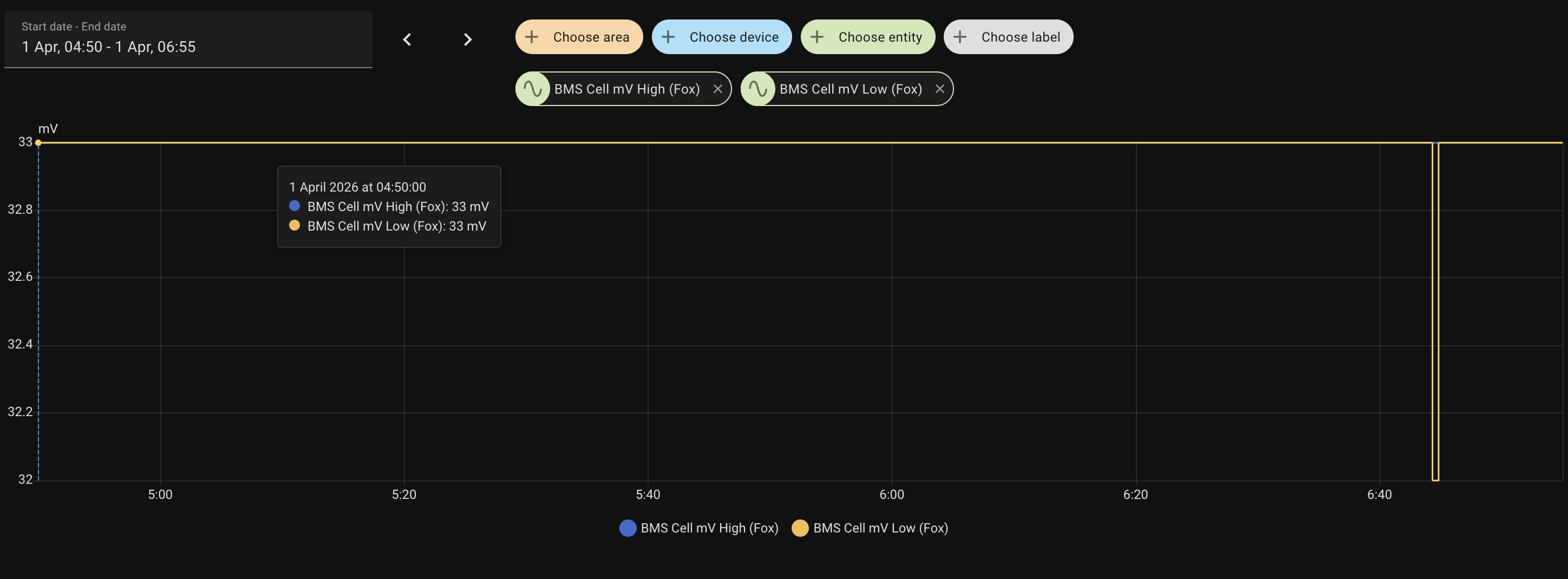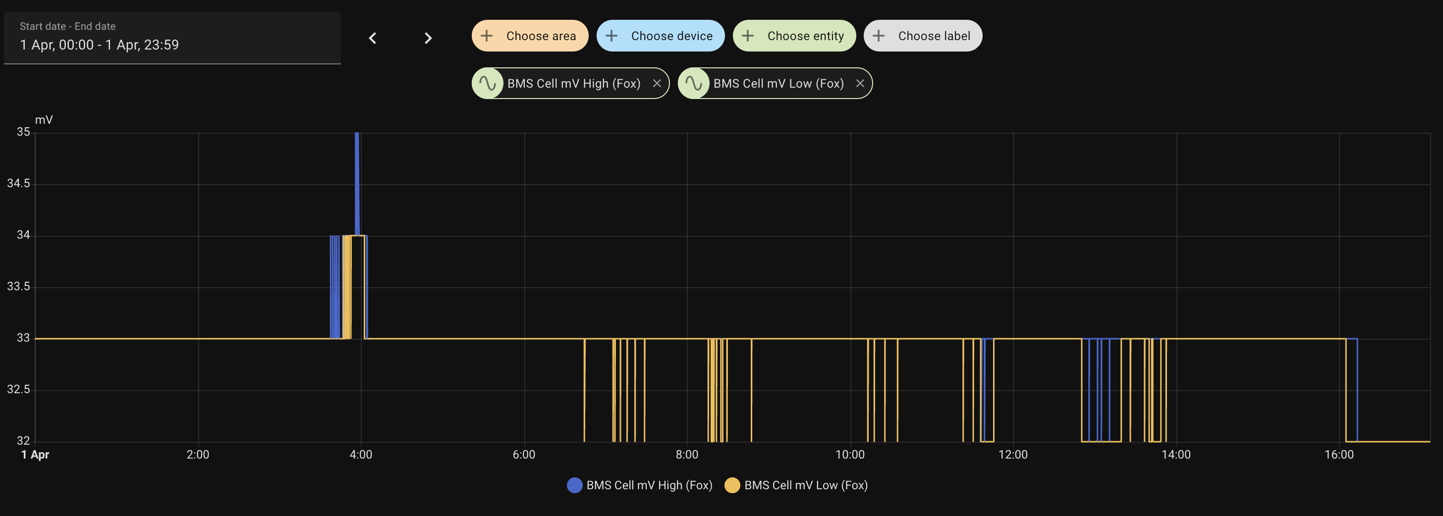 You may wish to look at your Cell mV min/max for same period. I think they should be less than 0.020mV between the two. They can differ during heavy discharge/charge... but for me they tend not to drift that far apart.
