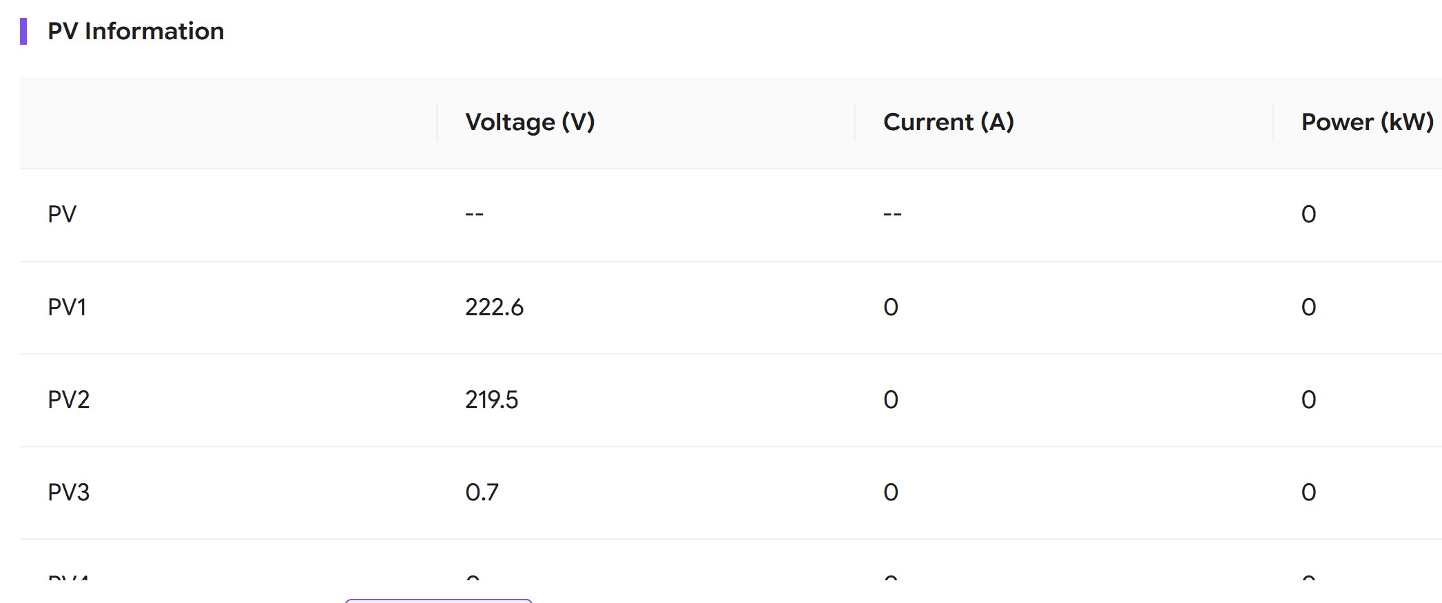 I understand the inverter will shut down below 75V PV but we are nearly 3 times that