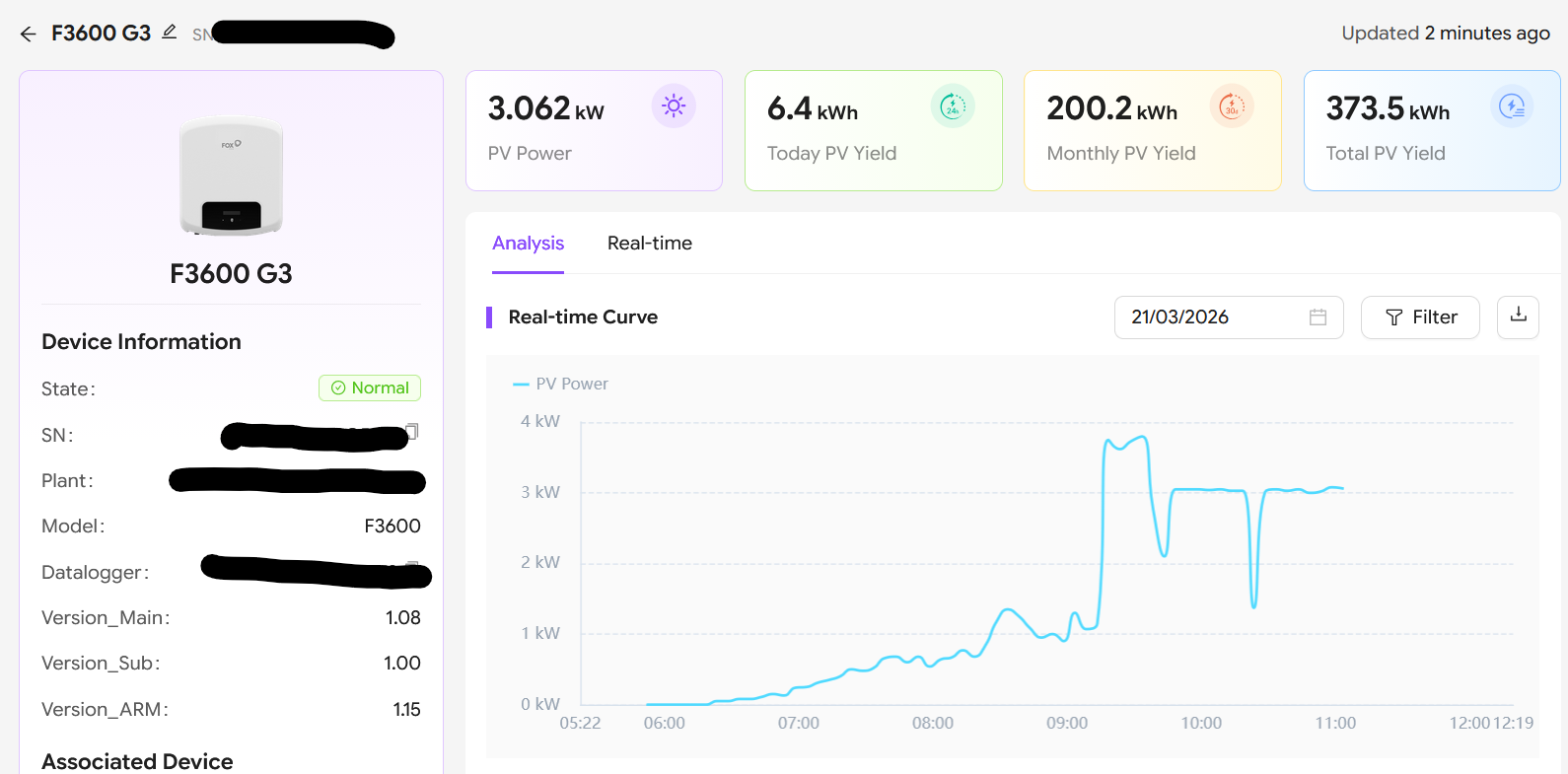 Have now had a Solex inverter fitted to the string that the F3600 G3 was fitted to, and it has been able to maintain up to 3800w with peeks of 4040w