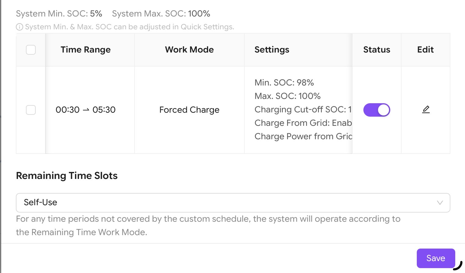 Is anyone else back to square one with force charging since the most recent firmware update? I cannot get my battery to force charge over night. I have the SoC Min at 98% and Charge cut off at 100%, but nothing happening again. I think I may need to ticket this with Fox…
