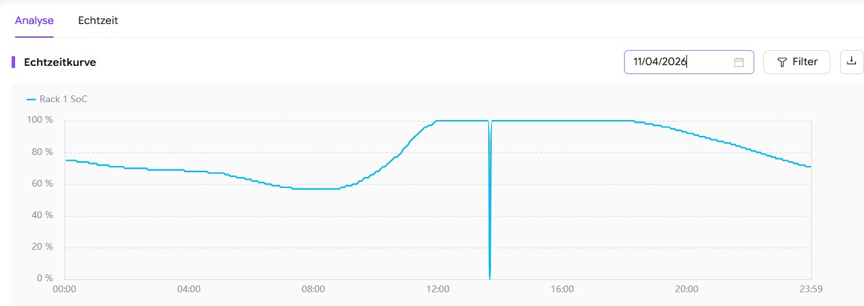 Hier die FOX Cloud SOC Kurve, sieht alles gut aus. Auch wird mir in der Filter Option nur eine SOC option angezeigt.