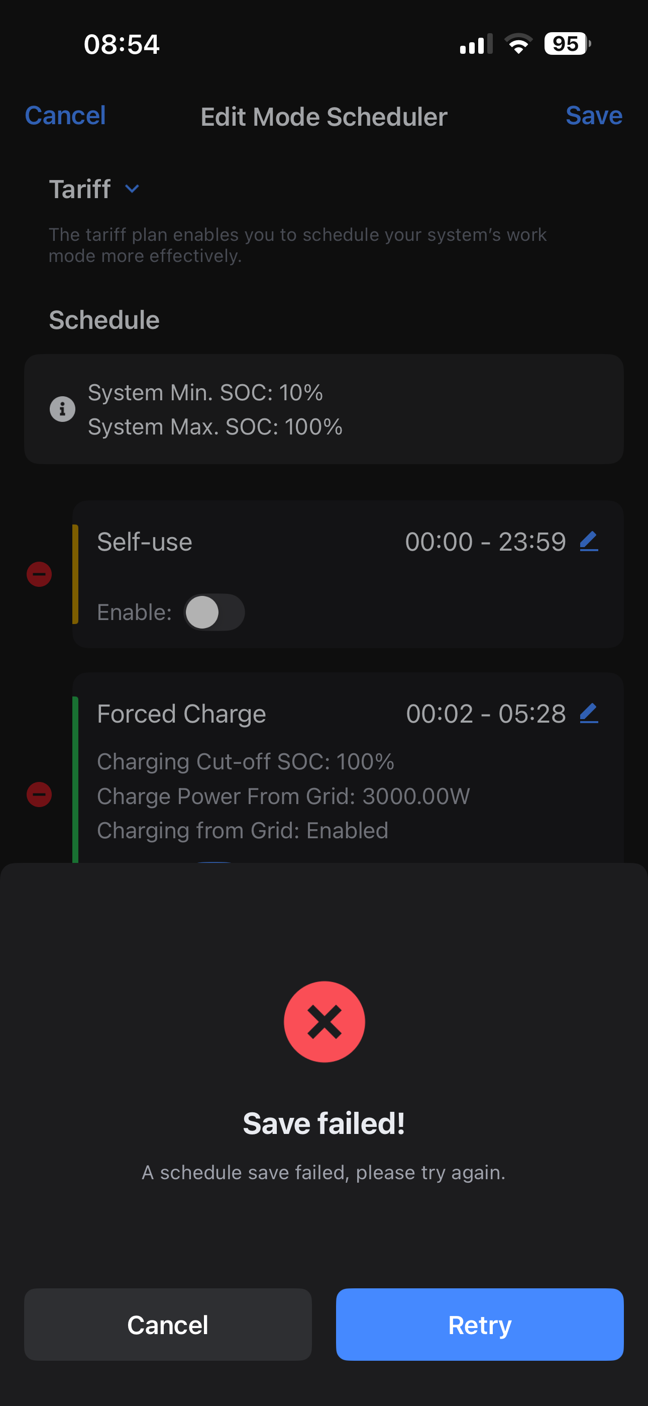 Still cannot save any changes in Mode Sceduler