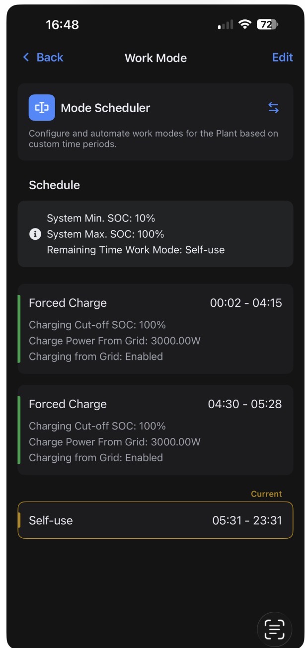 Overnight it charged to 100% and went back to self use rather than drew from the grid.