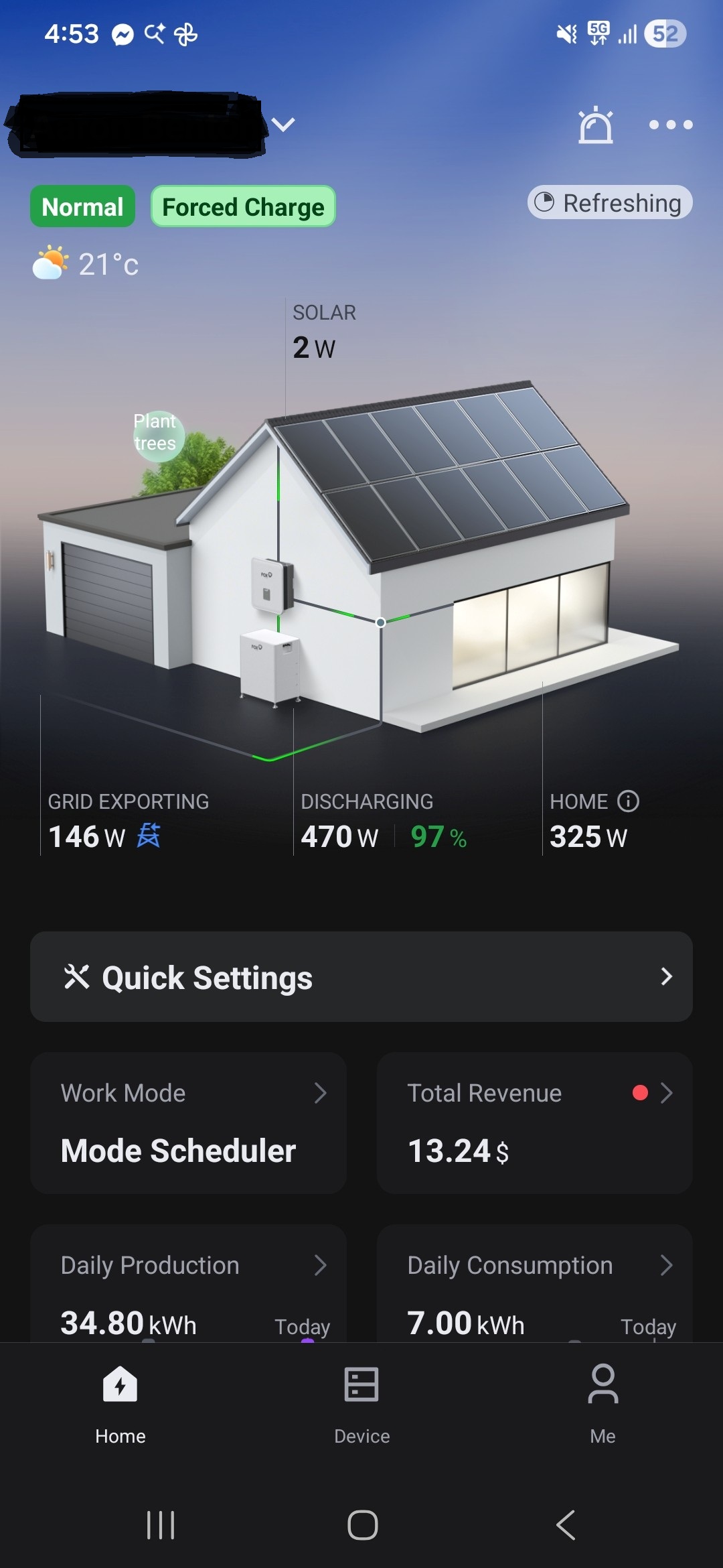 I have an image from the FoxCloud app and figures from the modbus dongle export.