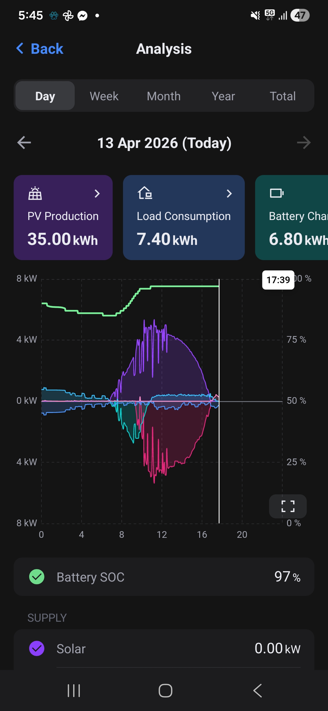 Typically the battery SoC will flip between roughly 96% to 100% in cycles, as it doesn't like to be stuck on 100% for too long in Self-use mode.