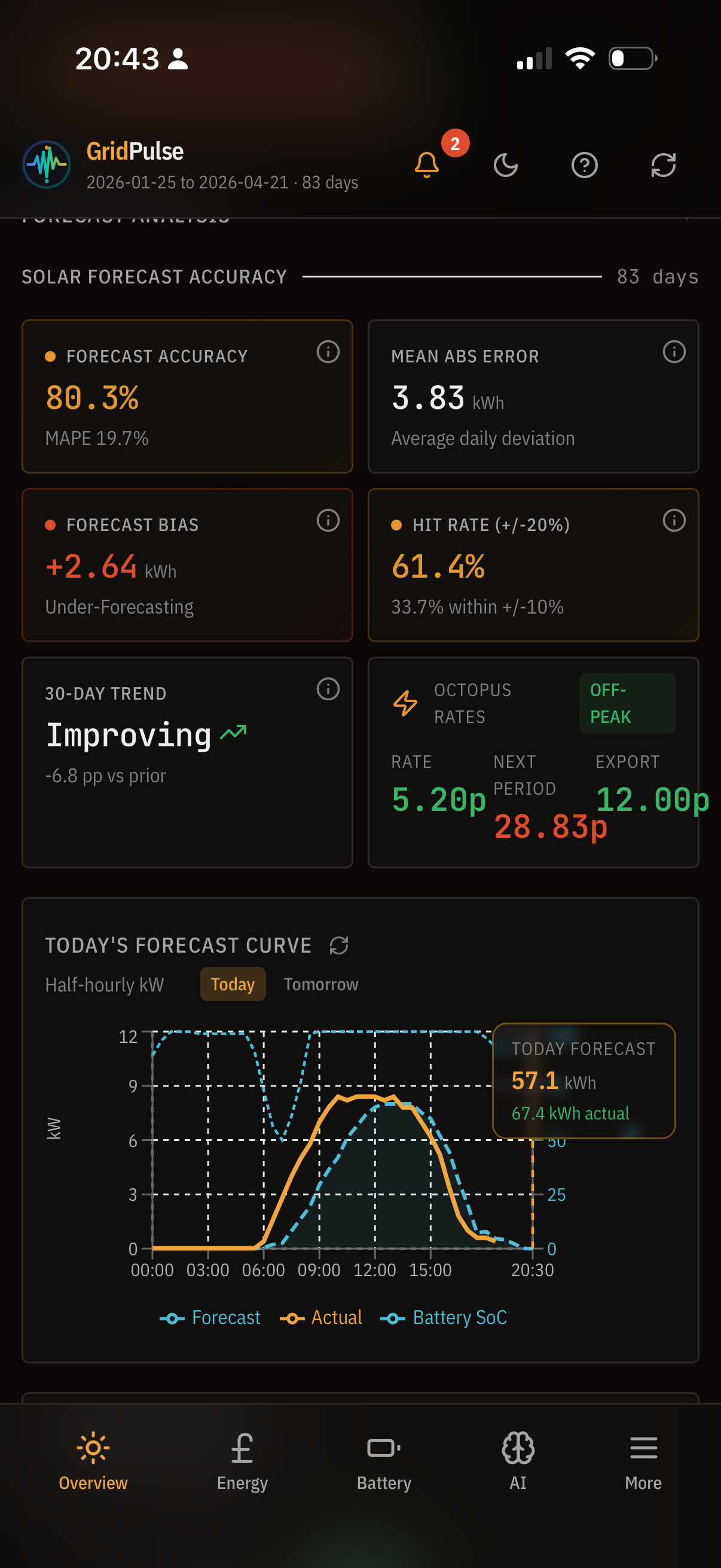 I have to say. I’m satisfied with solcast forecast. Since I started tracking it’s 80% accurate and most of the time I overproduce vs forecast.
