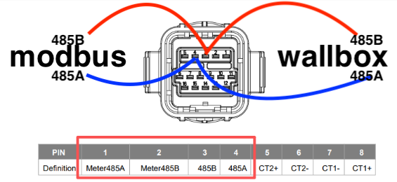 The wallbox and inverter are integrated with RS485 connection following the scheme on the image.