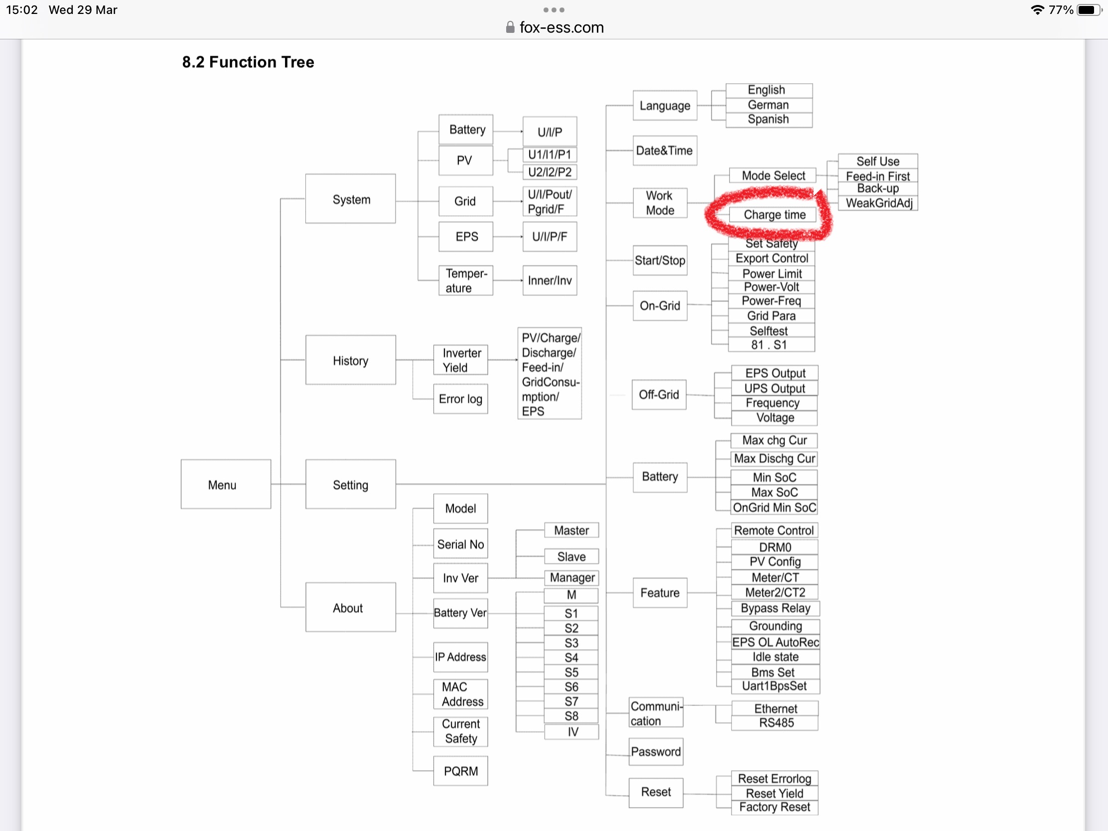 I have copied my post from the previous page as guidance for those that wish to set the charge periods through the inverter panel - the inverter will continue to be fully functional.