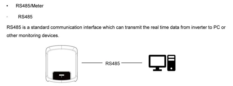 The documentation (page 19) of my inverter mentions connection with a PC over a RS485 connection.