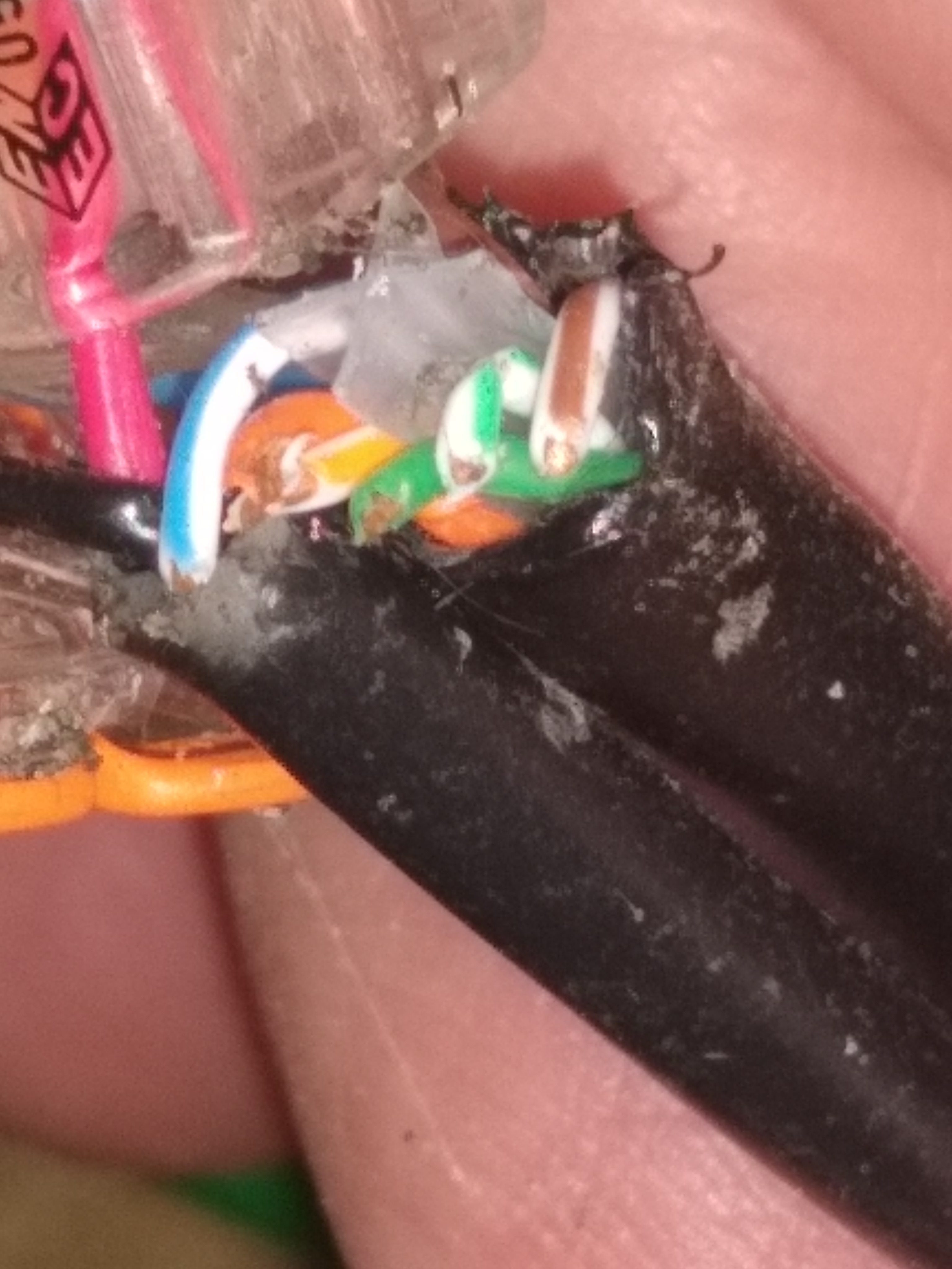 The wire I've "firmly connected" is the one of the twisted pair that still has copper showing. Would it be sensible to assume that they only connected the other one of that pair at the other end, or should I look for something else wrong?