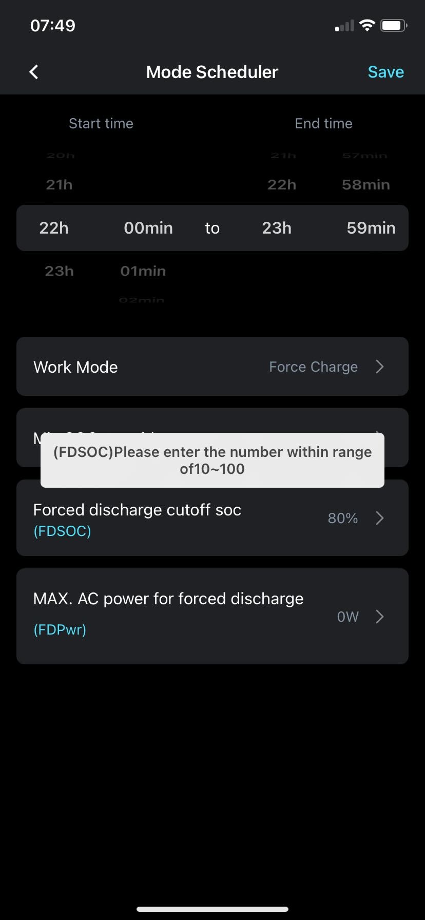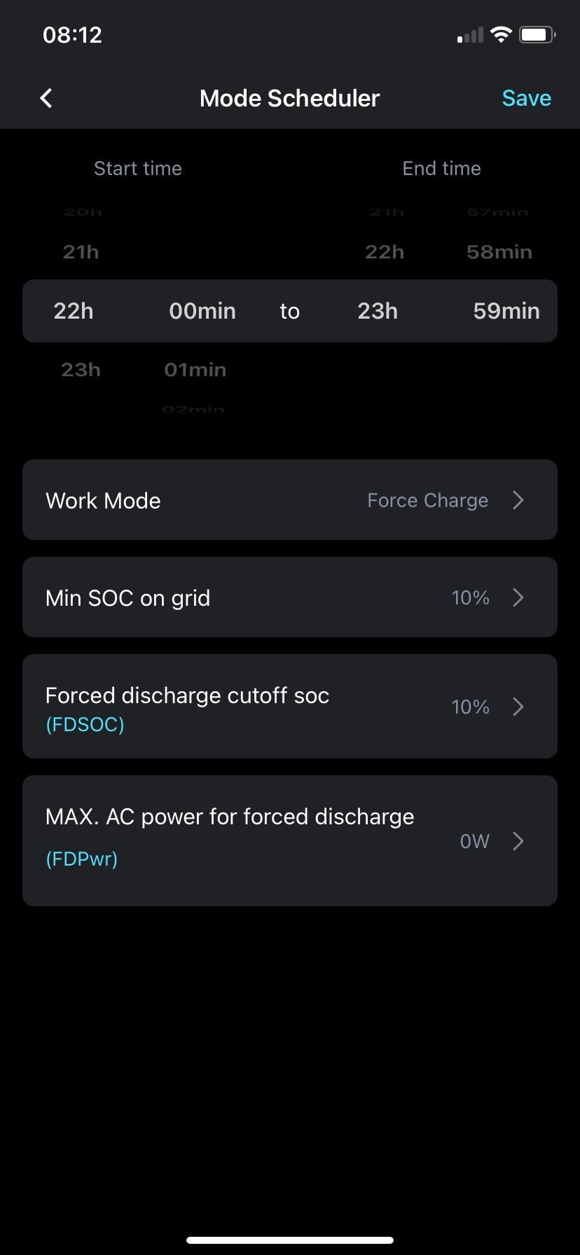 I am trying to match a mode scheduler to my energy tarif.