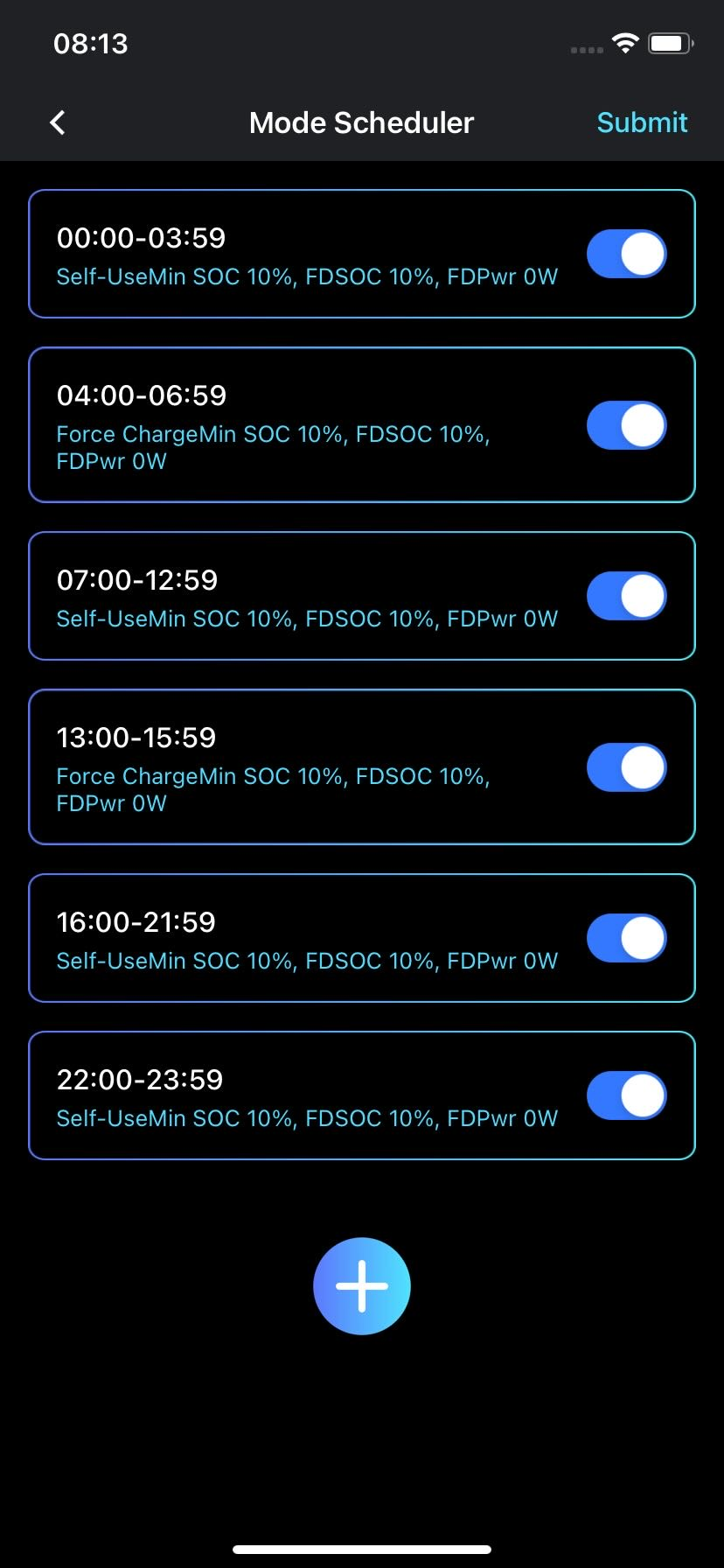 I want to force charge during the 10p times. Then proritse self use in the more expensive windows.