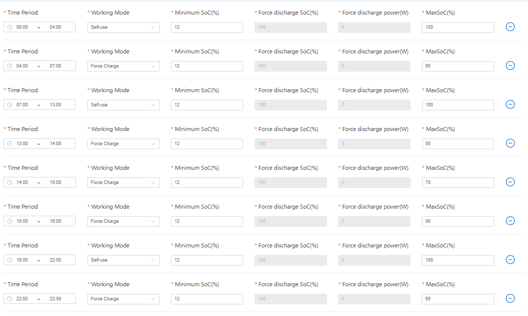 The schedules appear to use the remote control functions of the inverter rather than them developing a work mode that is built in - the problem then is that the actual MaxSoC (i.e. the one that has always existed in battery settings) is not respected when Force Charging at all.