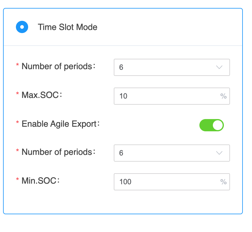 Hi Im trying to check that I set up the correct settings for my timeslot mode for my inverter.