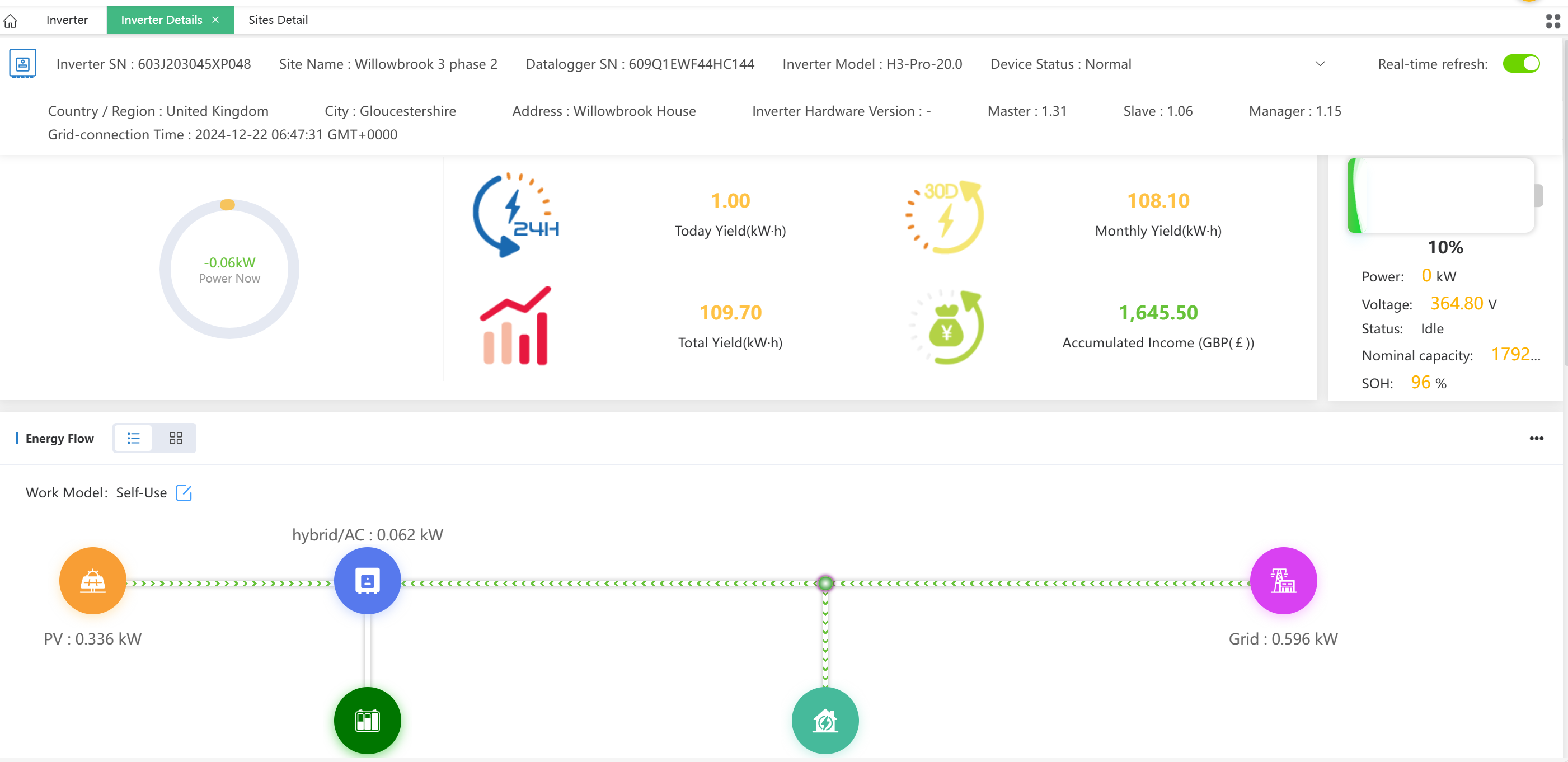 The one thing I hadn't asked before but now it's settling down I will, is, have you updated the firmware to the latest?. The H3 Pro is a very new inverter and there have been a number of releases to correct bugs and issues, so can you check your firmware is the latest.
