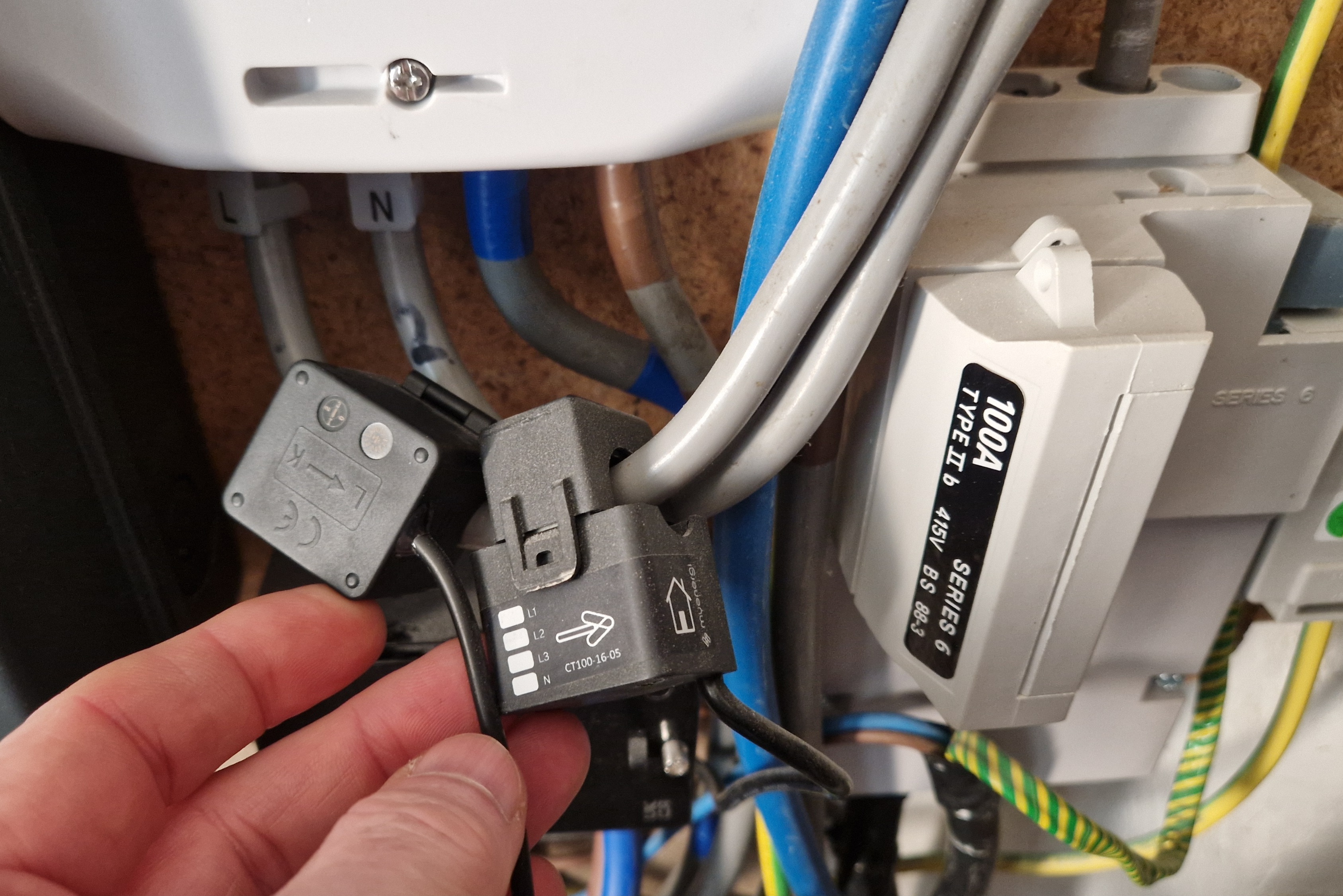 As far as the CT clamp is concerned, I have a rather poor photo showing the installation around our electricity meter. There appear to be two clamps attached to one cable? One of them has an arrow visible.