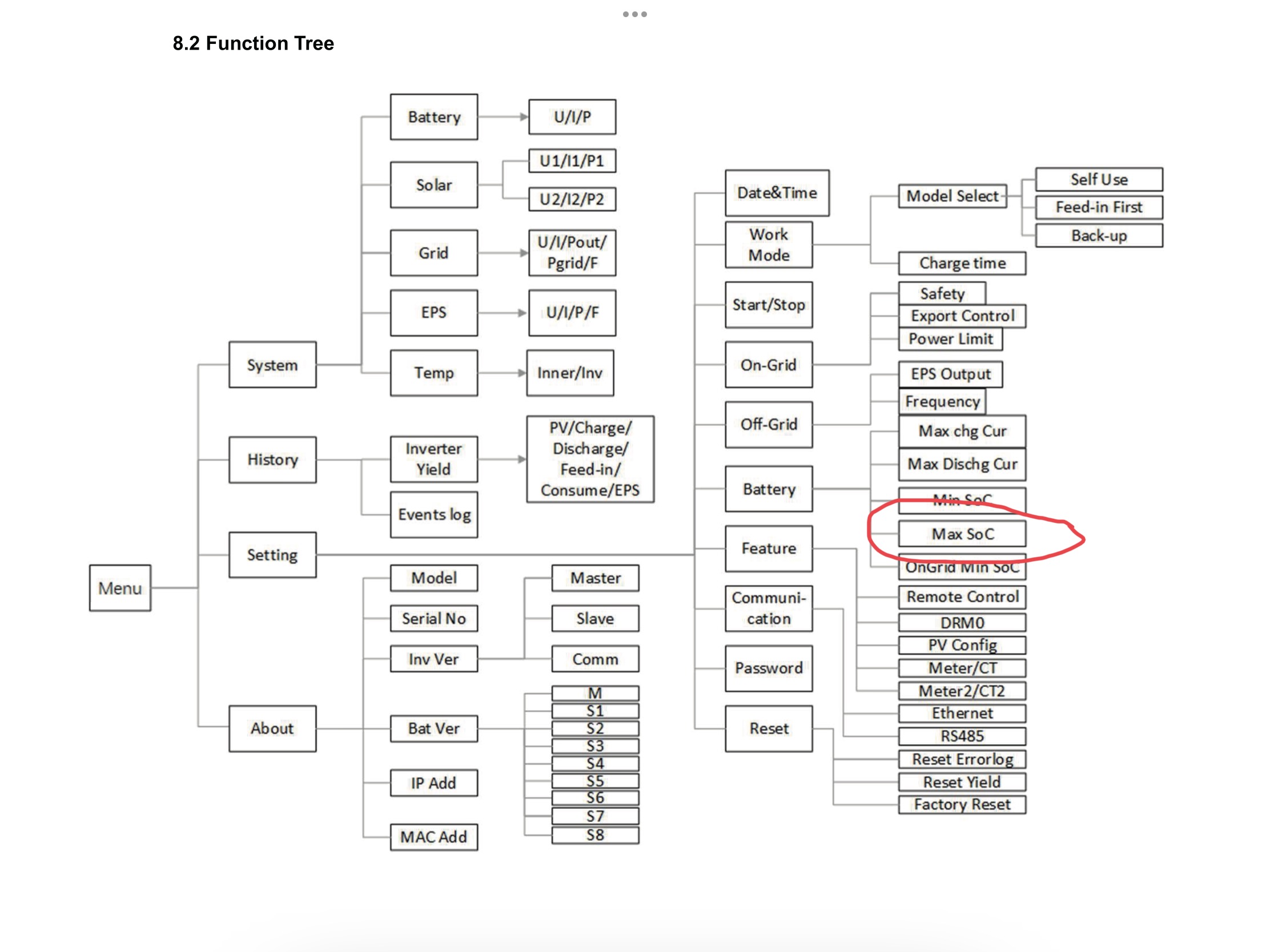 You will need to go into Settings, 0,0,0,0(enter), Battery, and Max SoC should be 100% if not set it to that.