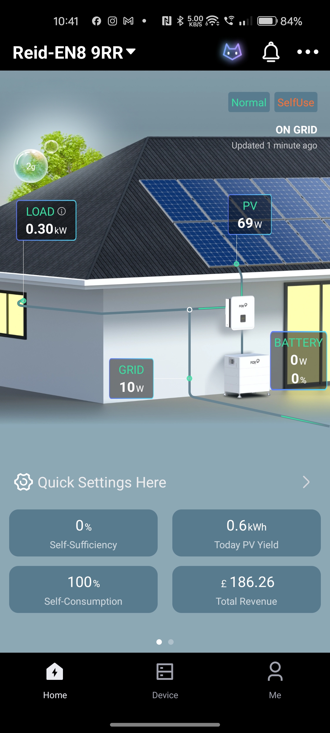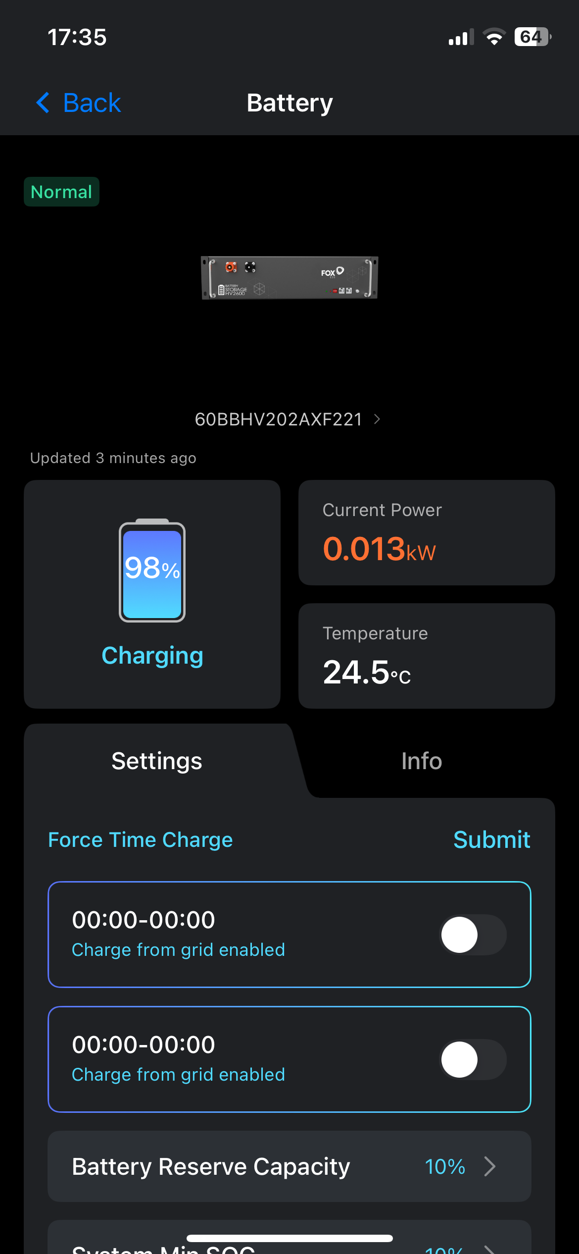 One issue though is that the stats of the battery (State of Charge and Current Power) are not showing on the home page of the app (first picture).