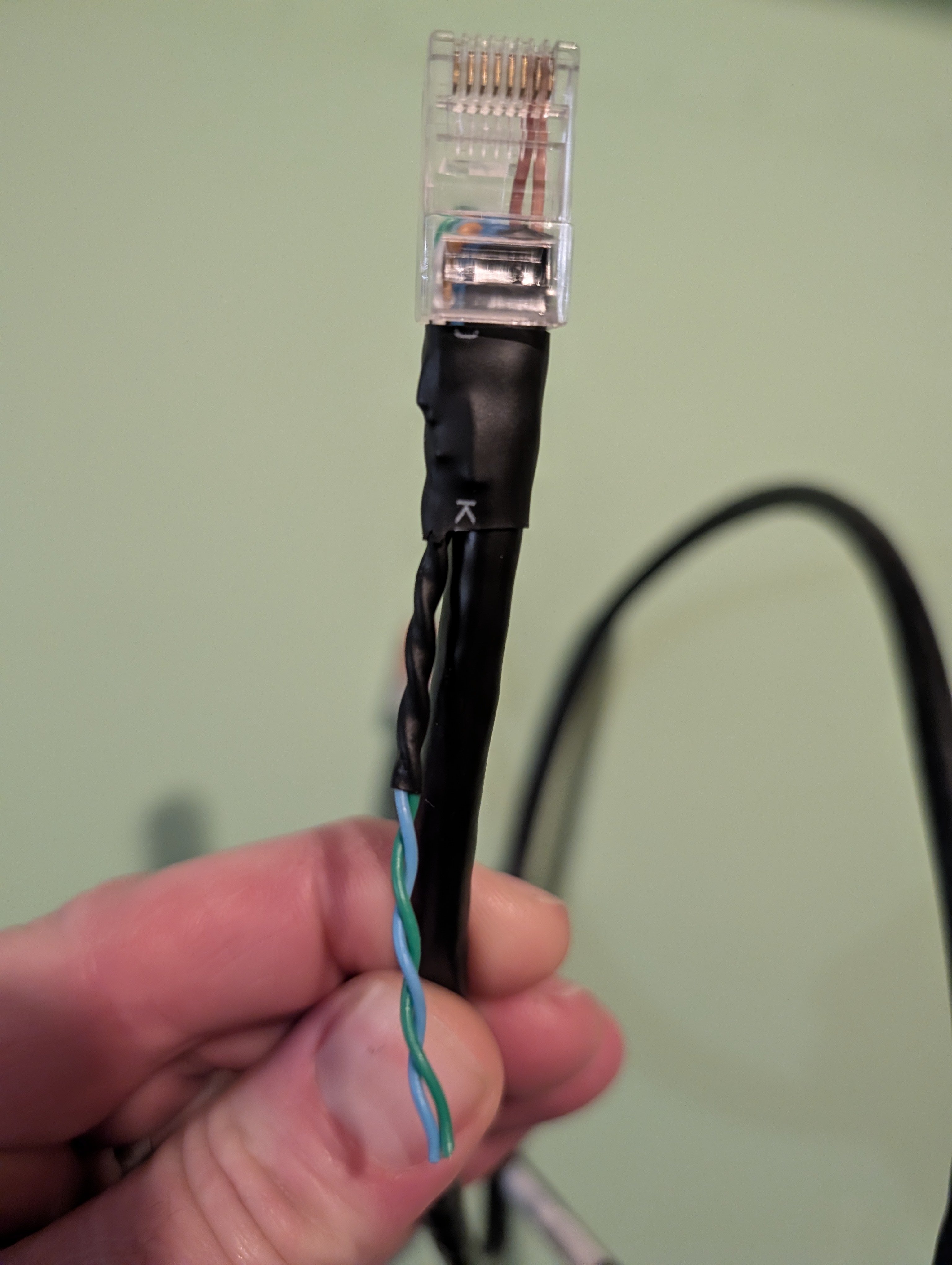 Knocked up a cable yesterday using an old Cat5e patch lead and have it wired to a 12v battery and powering the EW11 which arrived this morning. The EW11 doesn't follow the same pinout layout as the RJ45 ports on the Evo so, I needed to flip conductors 7 & 8, keeping the other end as it came from the factory.