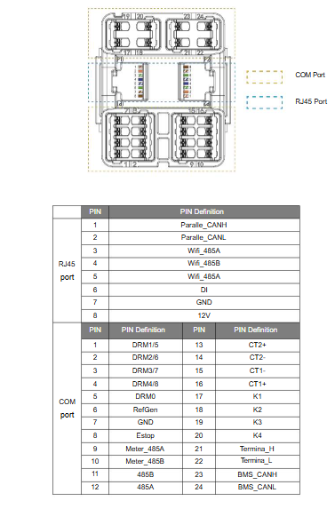 I used an old usb cable to make the power and rs485 connections. to see how to wire the the rs485 to the data port on the inverter you have the pin diagram in the booklet that comes with the evo. if neded, I can take a photo of inside the connector on the weekend and share it.
