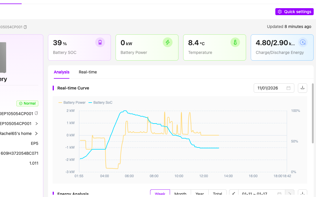 Your inverter firmware versions are also quite old, it would be worthwhile emailing Eon or (probably better) FoxESS support to get these updated.
