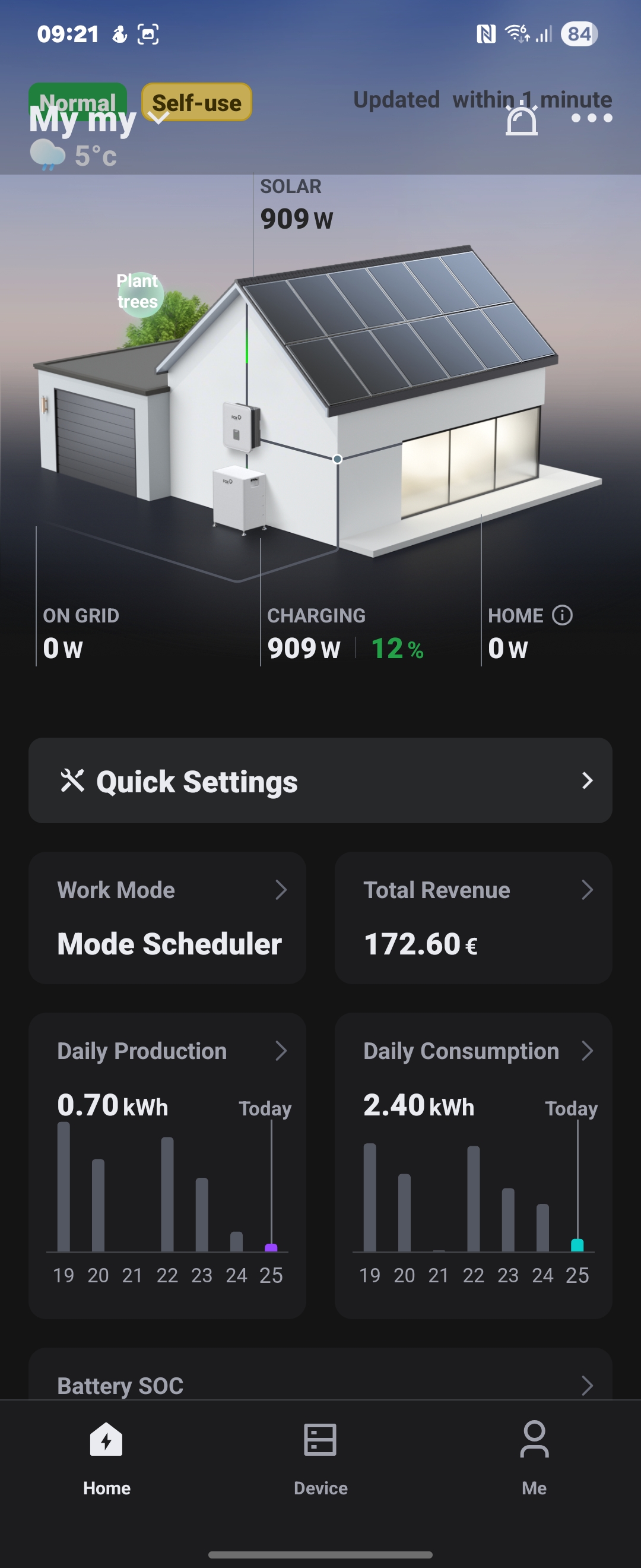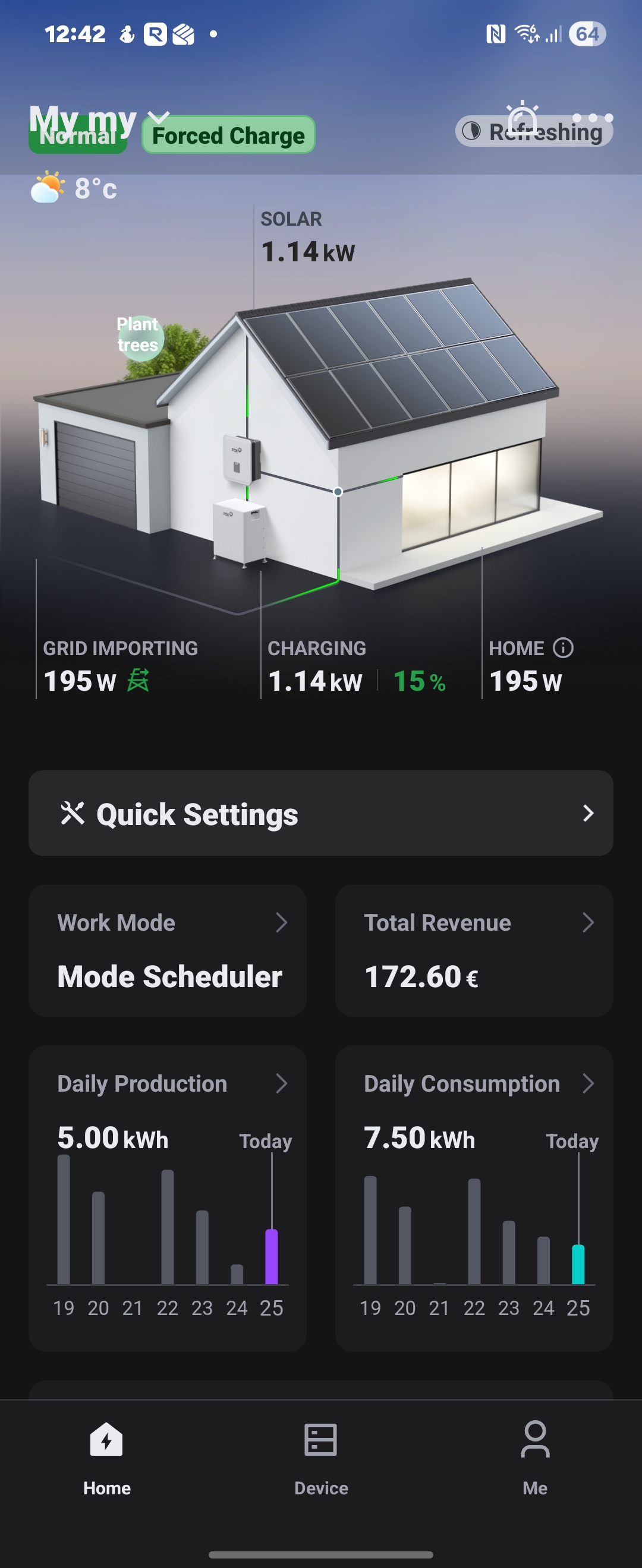 I activated the force charge now and all the electric that we are supposedly are using is now going to battery charge. Now the app shows correct data for household usage. Once we stop the battery charging, we will see the battery drain right away with 3.5kw.