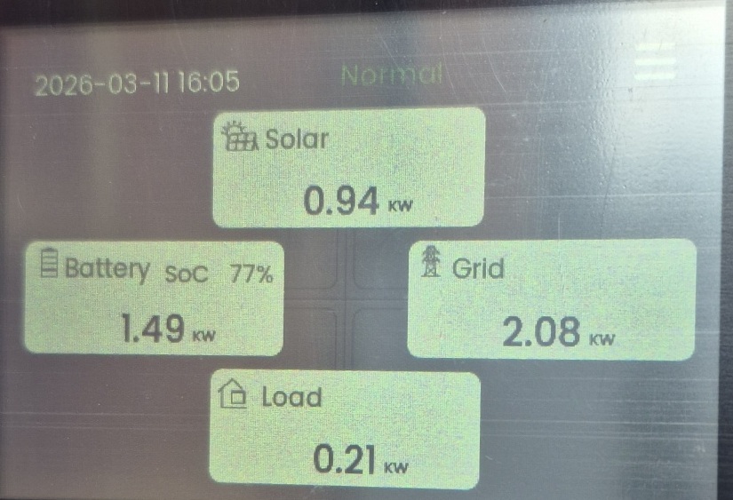 Phew that’s a relief. I did a hard reset and all up and functioning. The inverter says normal and I can see SOC. I’ve just set a forced discharge and the inverter is showing over 3Kw leaving so it must be an app thing.alexls wrote: ↑Wed Mar 11, 2026 3:23 pmIt's not a you problem, it's a them problem. Don't bother rebooting.James S. wrote: ↑Wed Mar 11, 2026 2:14 pm Hi,