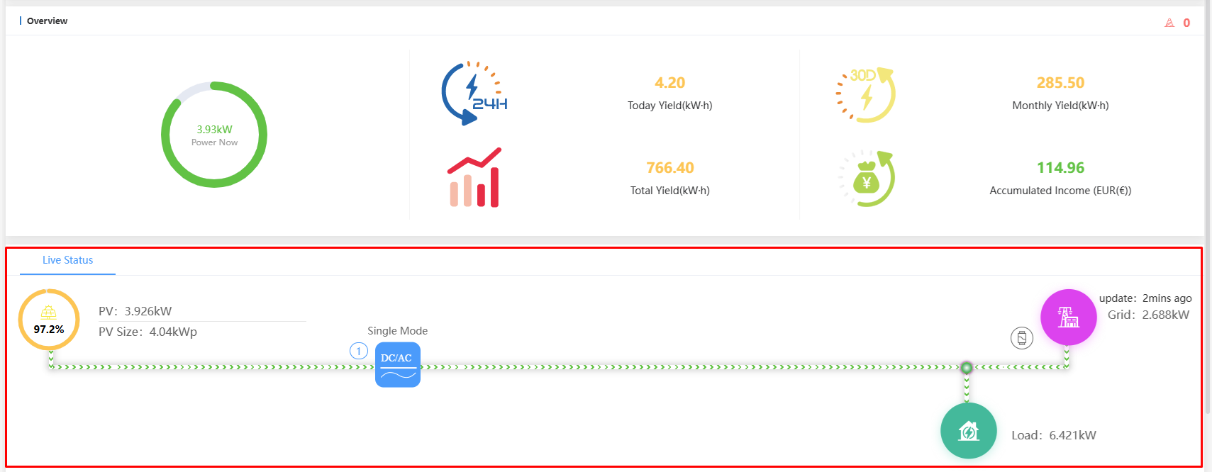 - Current grid injection/consumption
