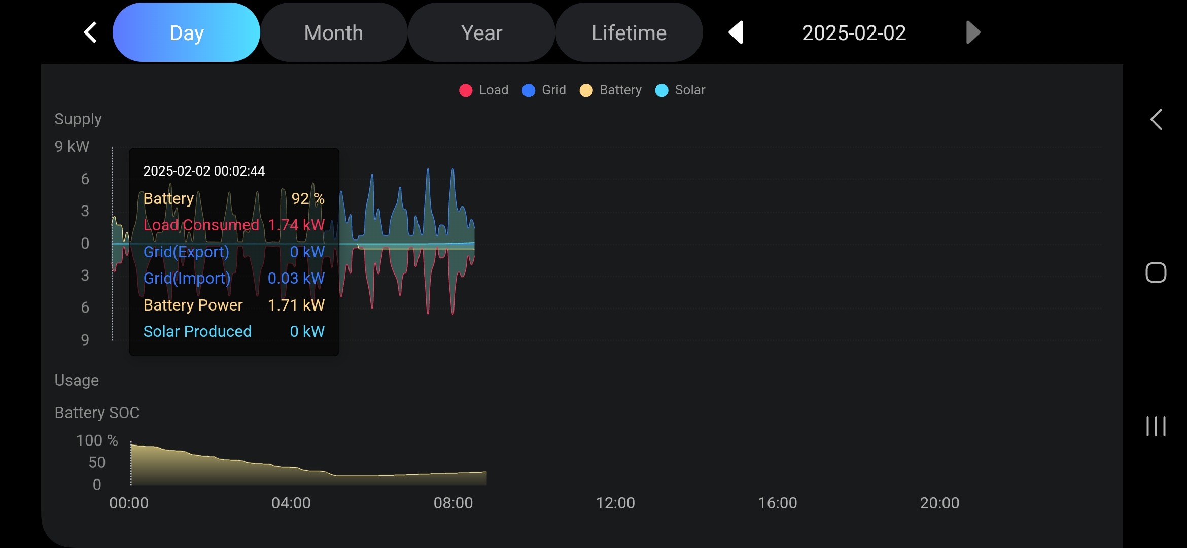 The notch in the SoC is where I rebooted the system, no altering of settings at all after that Passing midnight it was up just shy over 90% SoC, but instead of continue force charge it went into self-use Been careful not to overlap. The min SoC value of 75% in self-use is not my end game, just during testing Standard scheduler is and were disabled