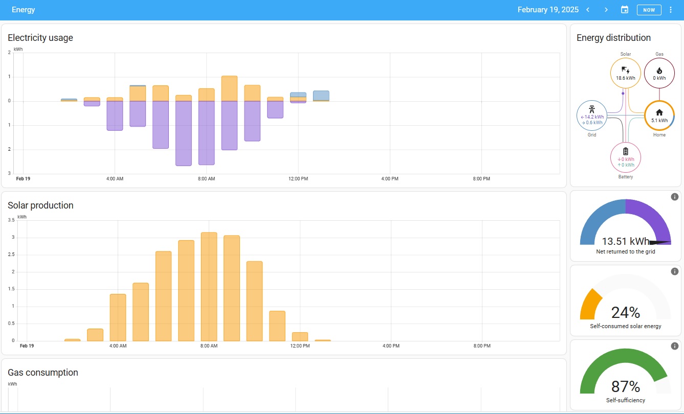 If you went to a bit more trouble and set up a home assistant (small micro computer) you can get much more information from the Fox cloud as the home assistant will store all the data received from all sensors so you can see power, daily/weekly/monthly statistics etc.. - this is a simple example of the energy dashboard from a home assistant connected to the Fox cloud.