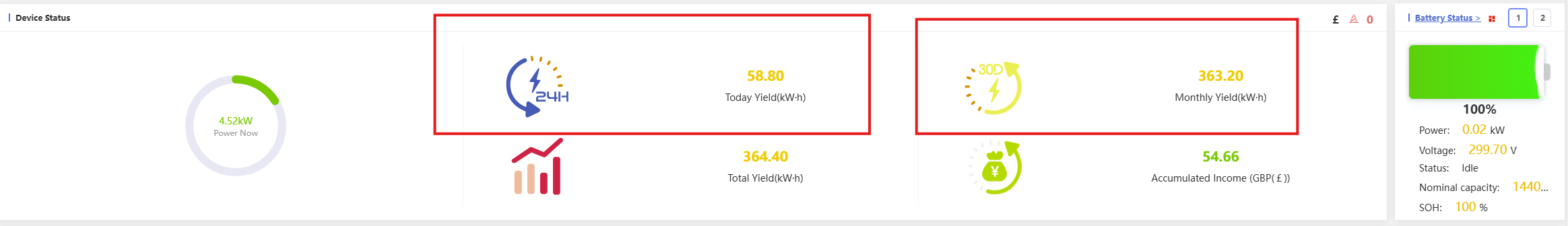 See screen shots attached - This system is 4 days old so monthly generation will be pretty low.