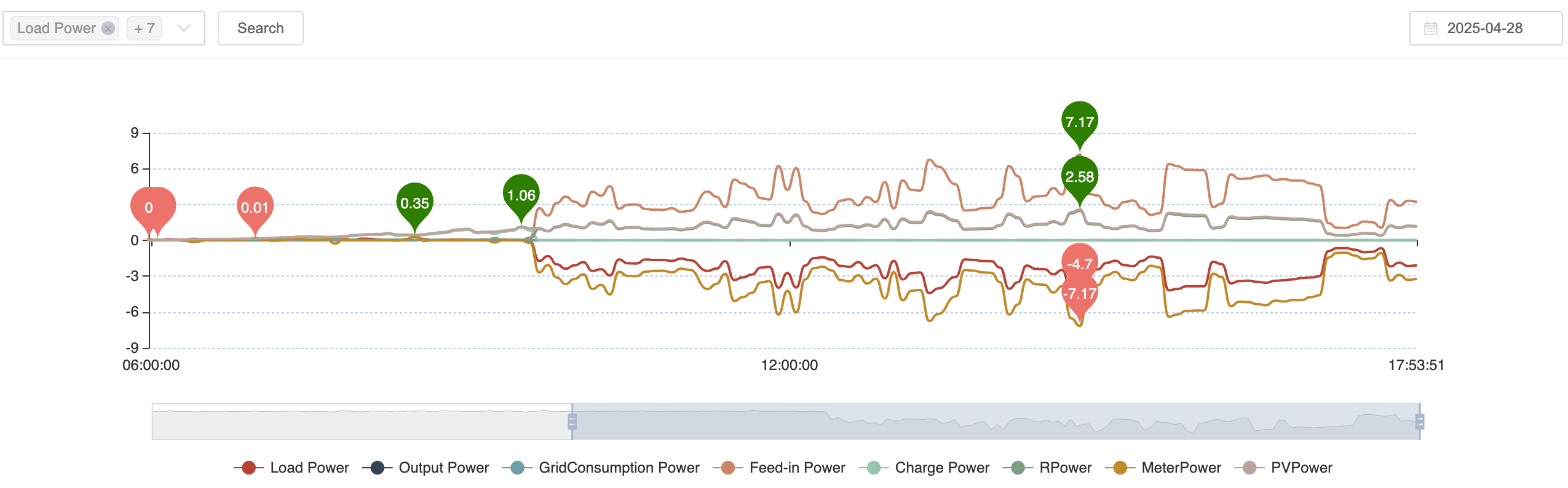 Cut-out, meter and CTs: The problem I've observed is that on both inverters, when the batteries are full (as they nearly always are now) LoadPower is always negative, Feed-In Power looks too high (each inverter only has 2.8kWp of panels) and is the inverse of MeterPower, and OutputPower (and PVPower, which has the same value) always = Feed-in Power + LoadPower. Based on the Feed-in stats, each inverter is exporting a lot more power than it ought to be.