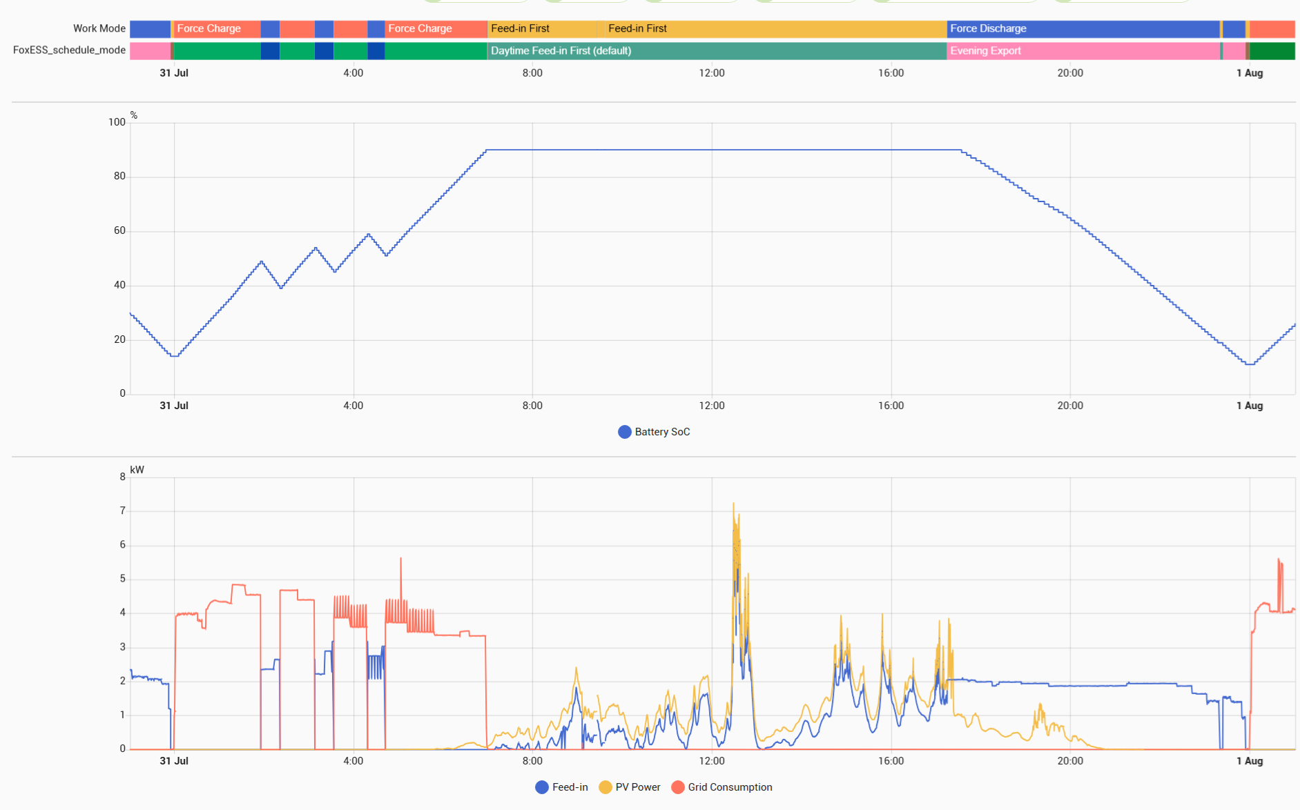 It looks like you are using home assistant for the automation. If that is the case, do you mind sharing your code for your automations? I just got me solar/battery installed and hooked it up to my HA server via modbus. I'm keen to do some good battery management.