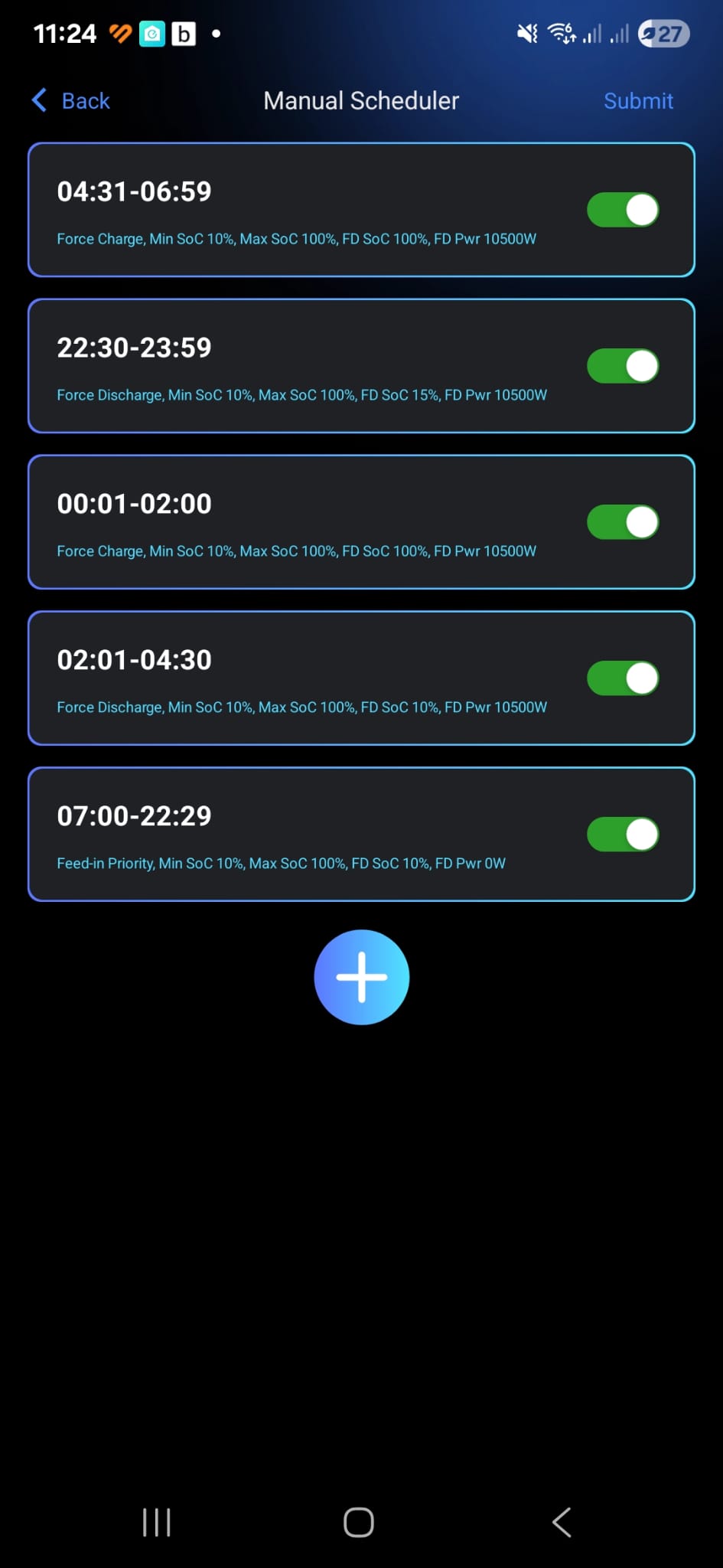 I can see from you scheduler settings that you are charging your batteries, then dumping them to grid, then charging again during the low tariff period - is that your intention ?
