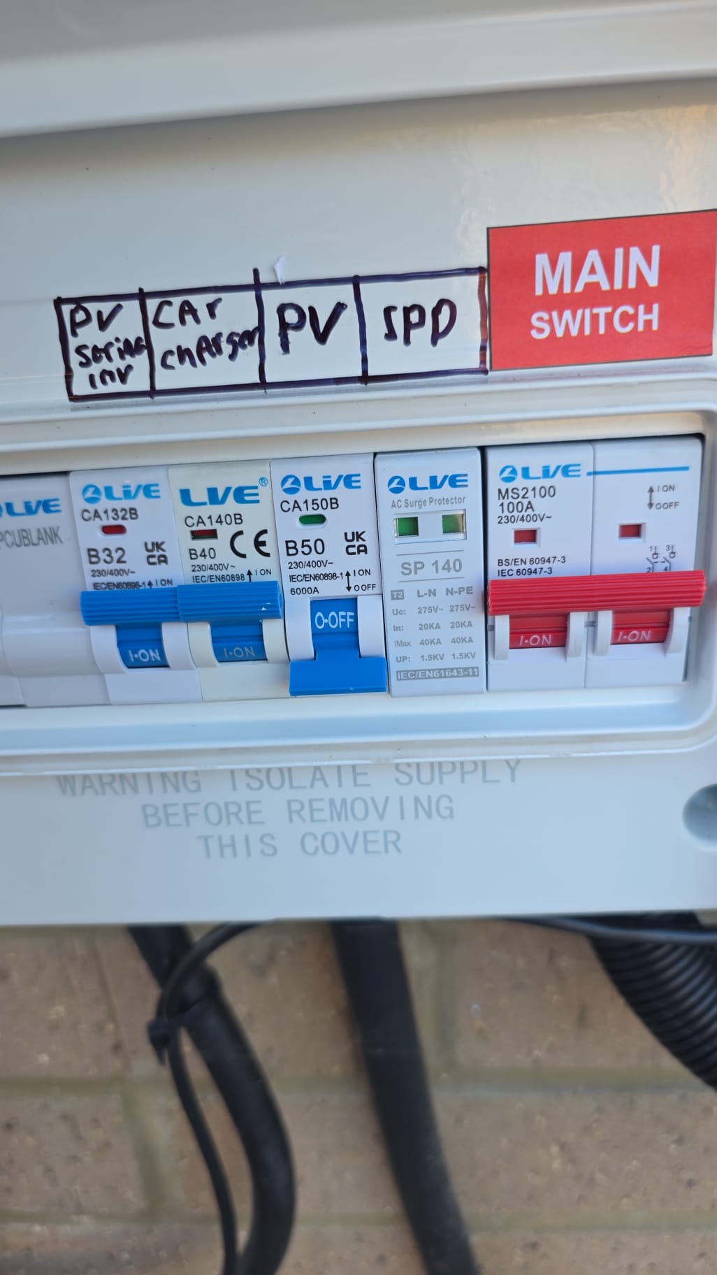 How big is your breaker, and is it an RCD that trips with leakage (if you post a picture I can tell you).JDW wrote: ↑Sat Nov 08, 2025 5:31 am Sebastian and Dave, did this work ? My system a 5kw inverter and 10kw battery for the last couple of weeks charges for about 15 minutes in the 2-5 am cheap rate time and I wake up to a tripped breaker on the consumer unit fitted by the installers nearly a year ago. It always switches back on fine. I've logged this with fox and let the installers know. I'm not very technical but any thoughts or help on this you can offer would be appreciated.
