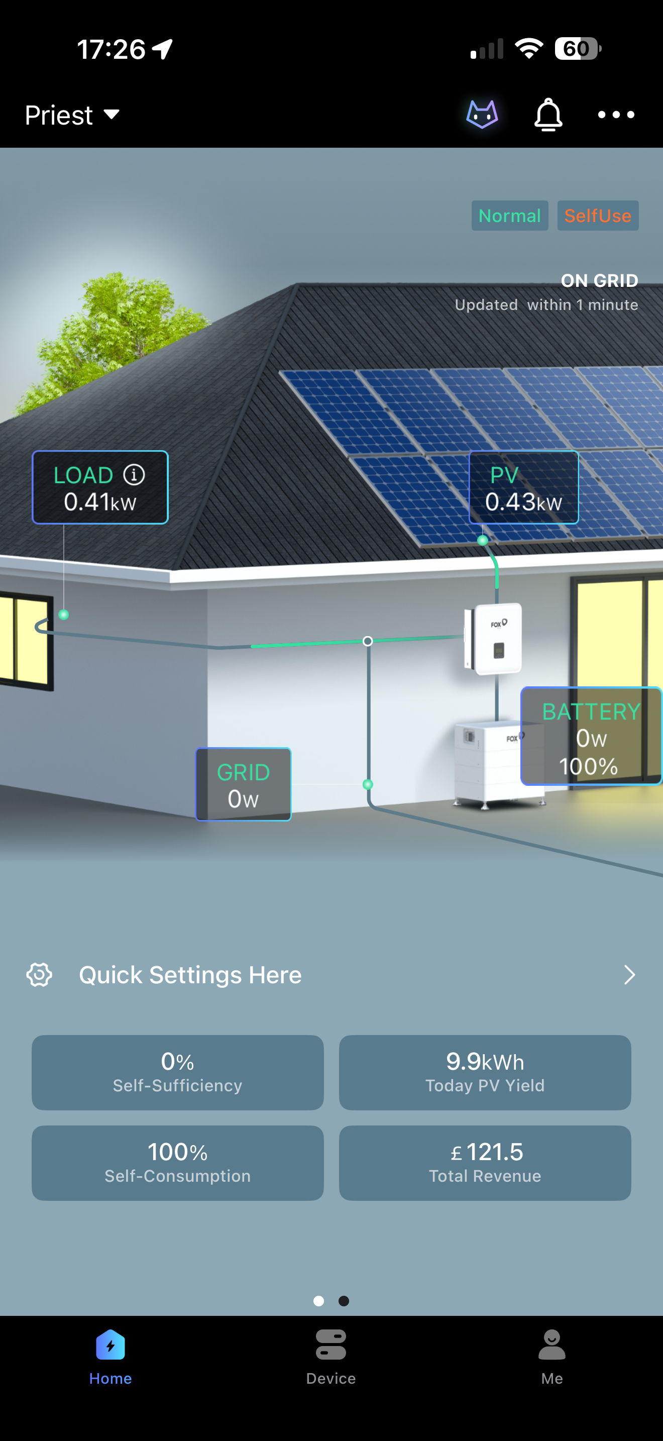 My grid input/output has been at 0kw all day even though I have been charging an electric car and had home appliances etc.