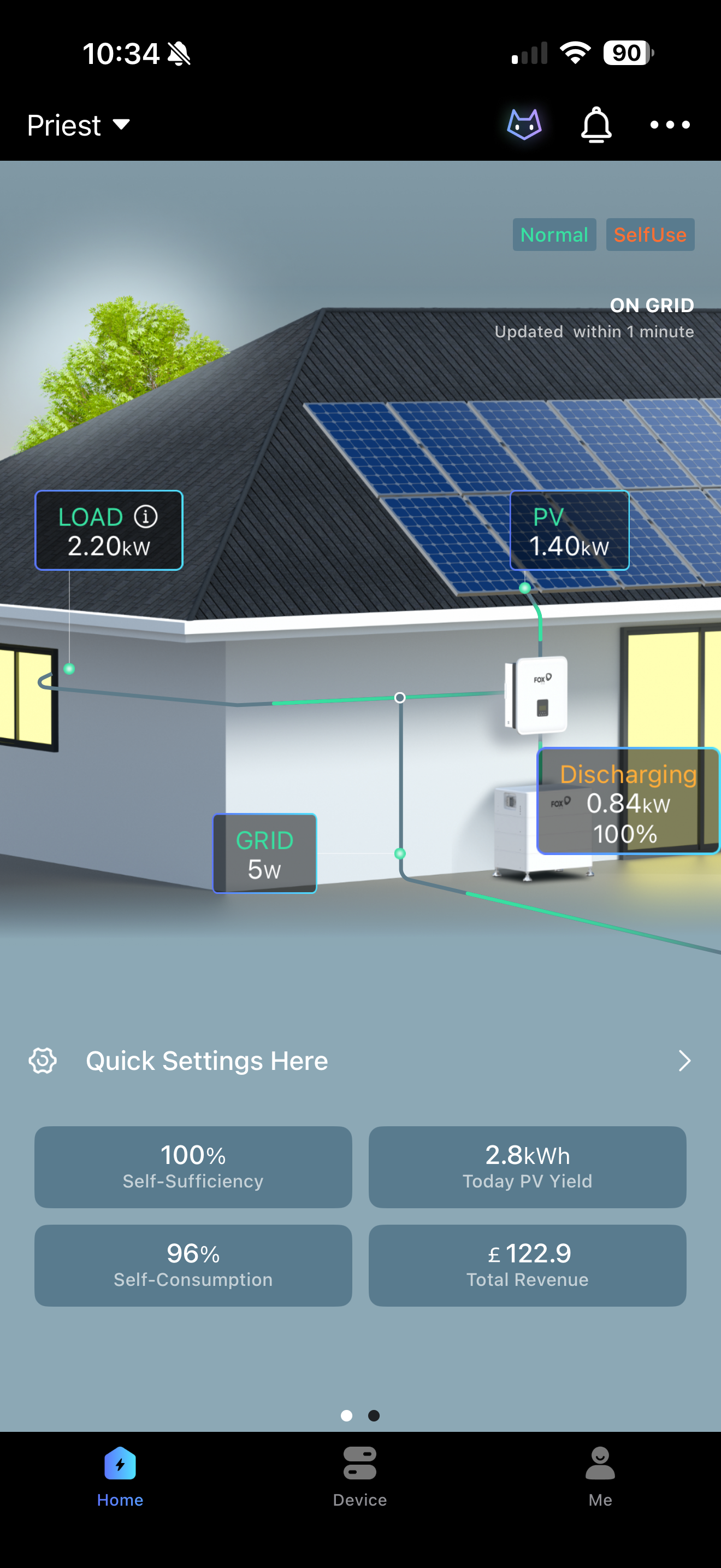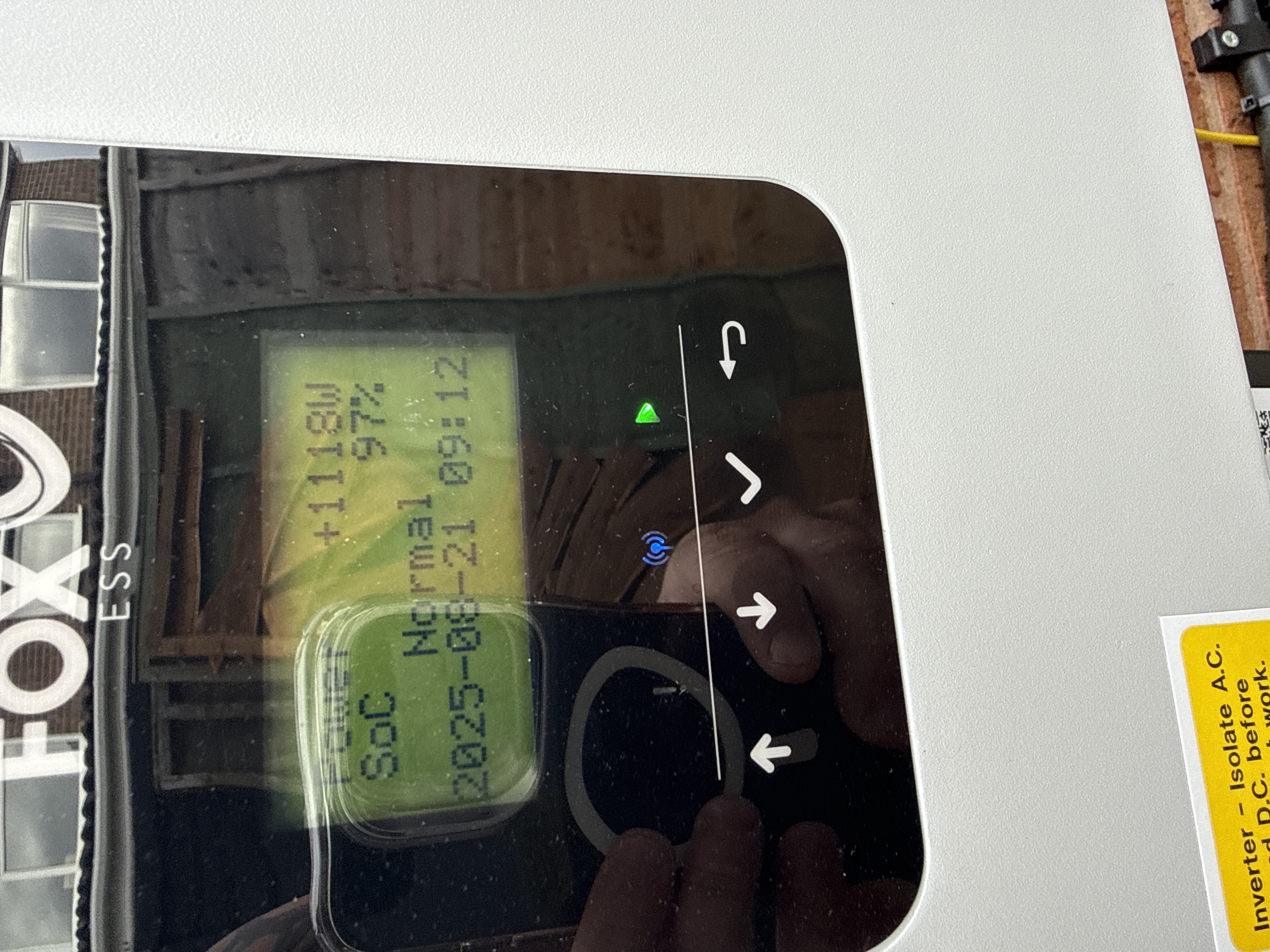 Yes that all looks ok, and the inverter panel is showing it is running in 'Normal' the output power is good as is the battery soc - and hopefully your app is now showing sensible information.