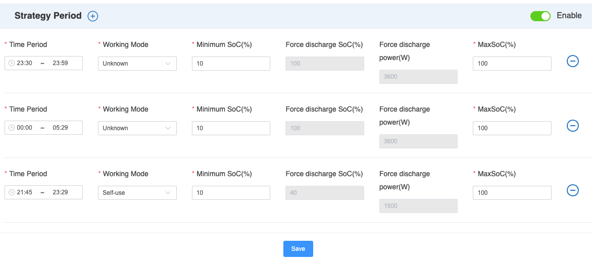 I just had the firmware updated yesterday when my installer came for some other work, and I'm somewhat disappointed that I can not set a force discharge.. and even the force charge doesn't show properly (even though, thankfully, it does charge). If it didn't, I'd be totally screwed as there's not enough solar right now to charge the battery fully.