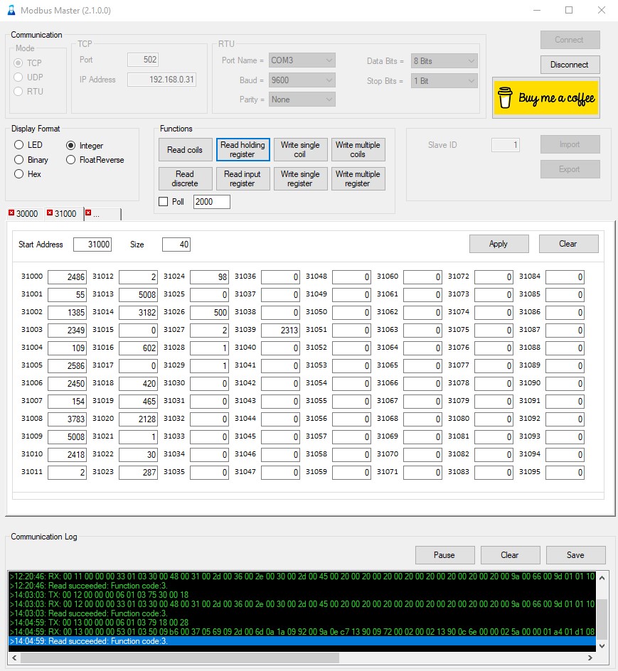 Looking at this, its hard to work out if there are new values here, so I've captured my HA dashboard (connected via RS485) and taken screen shots of the 30000 and 31000 LAN registers at about the same time: