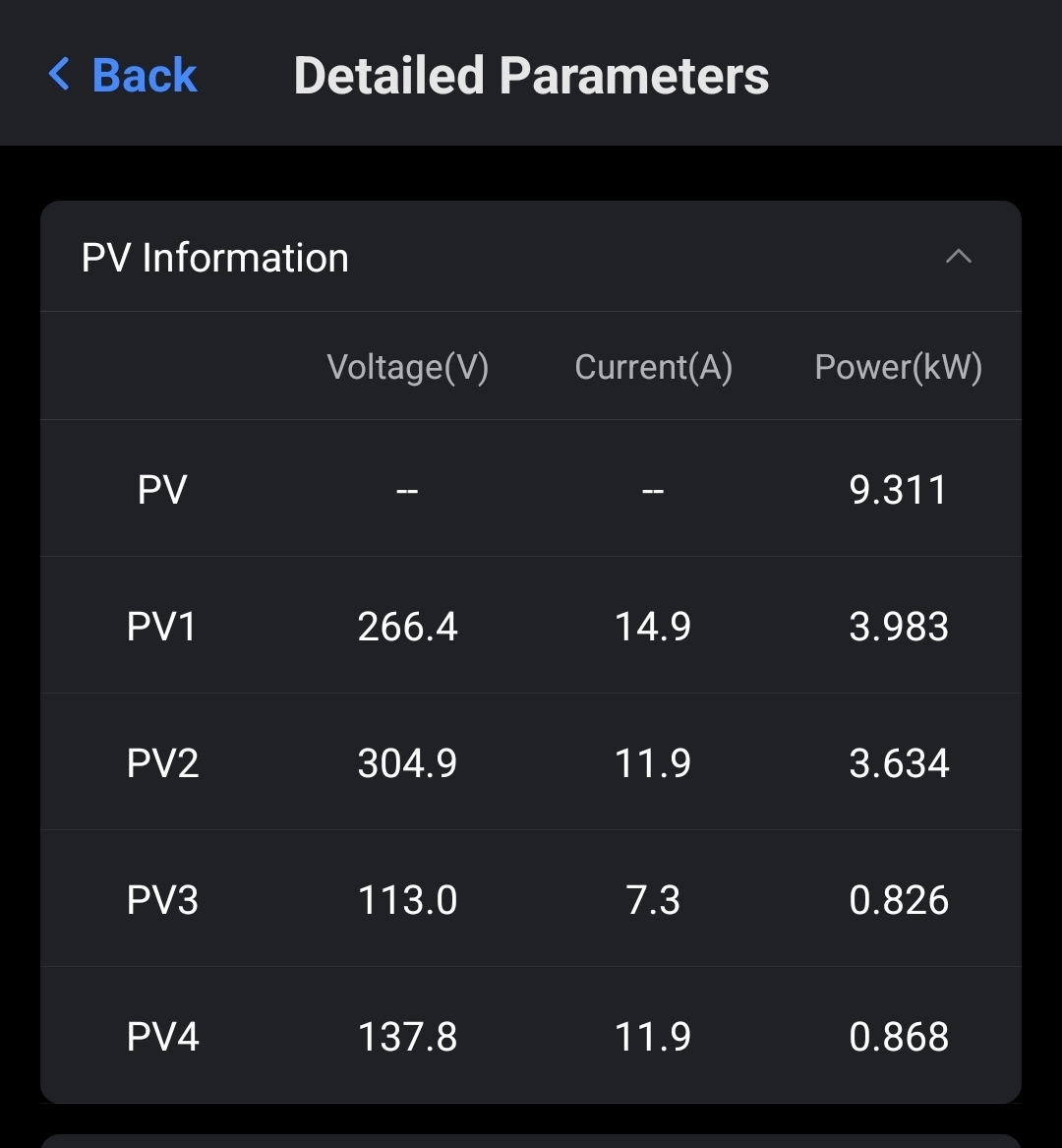 When I look at the physical inverter, the PV4 input power shows correctly.
