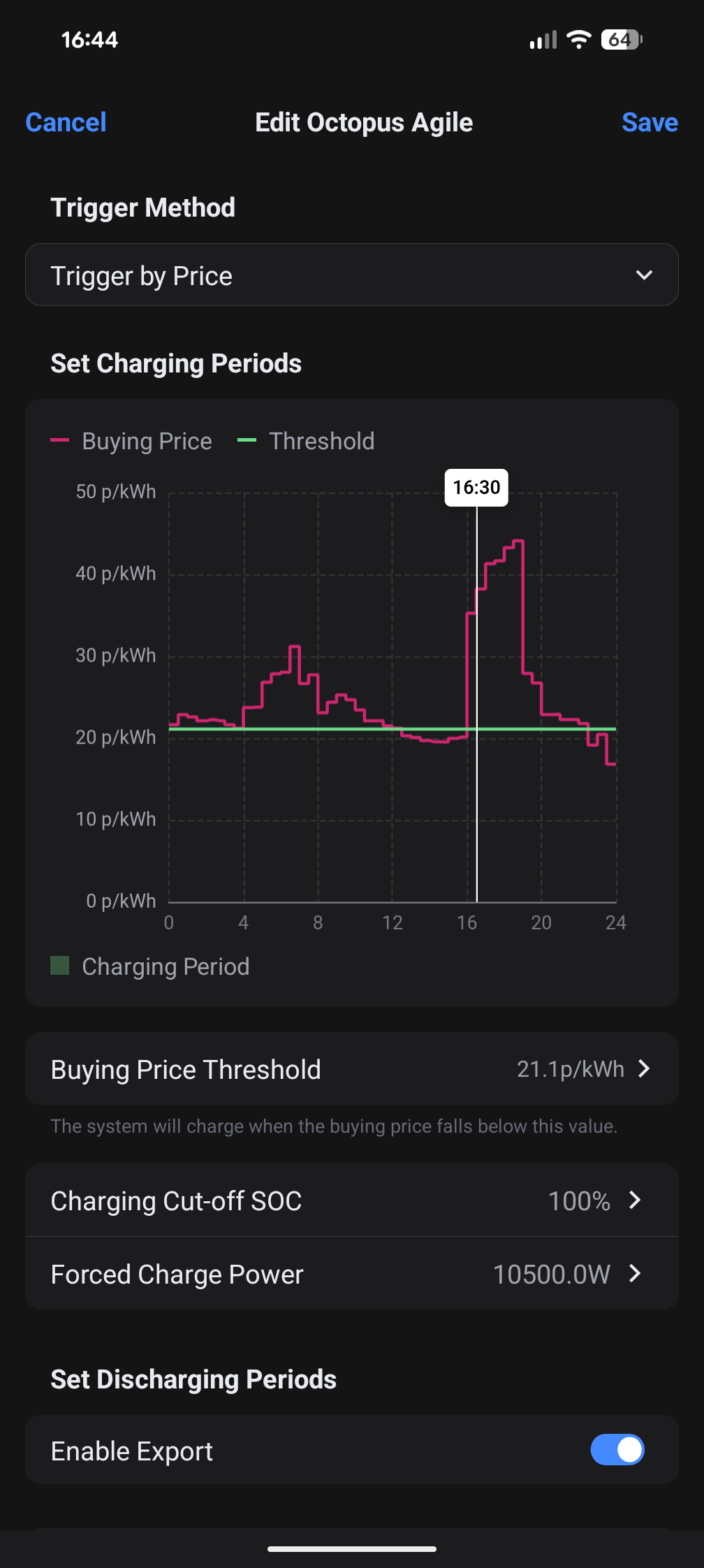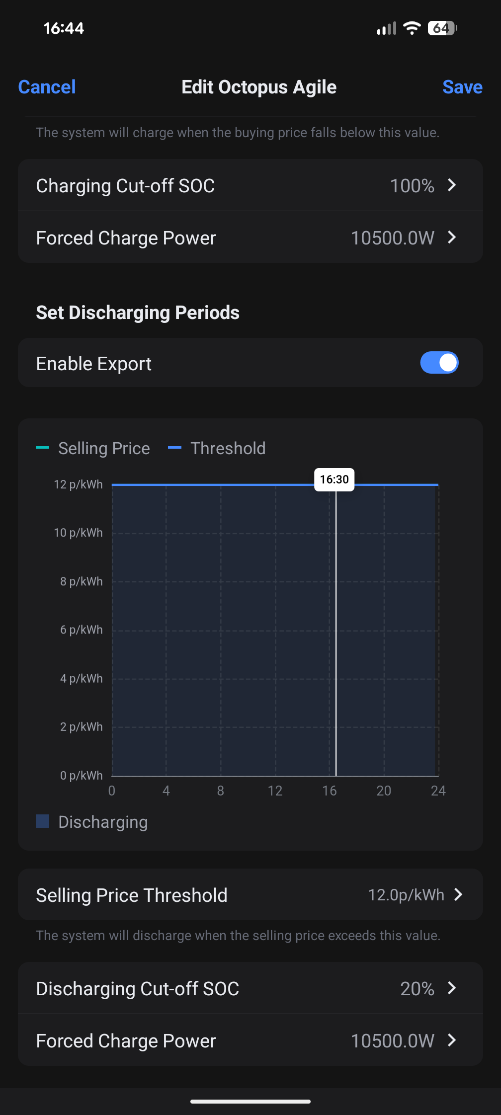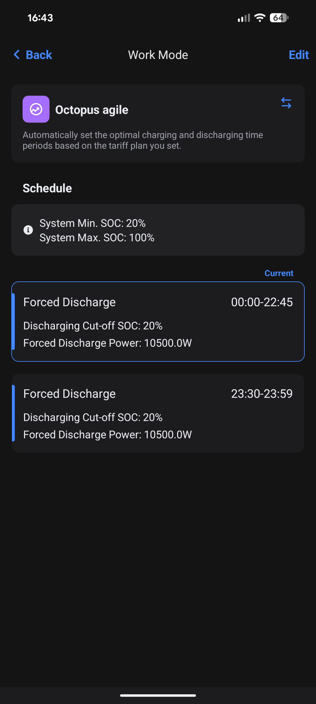 Since doing this, my battery doesn't charge unless I turn off enable export. It's been sat on force discharge for the last few days.
