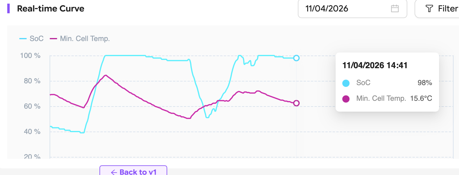 Today the minimum battery cell temperature is 15.6 degrees C so it should be charging.