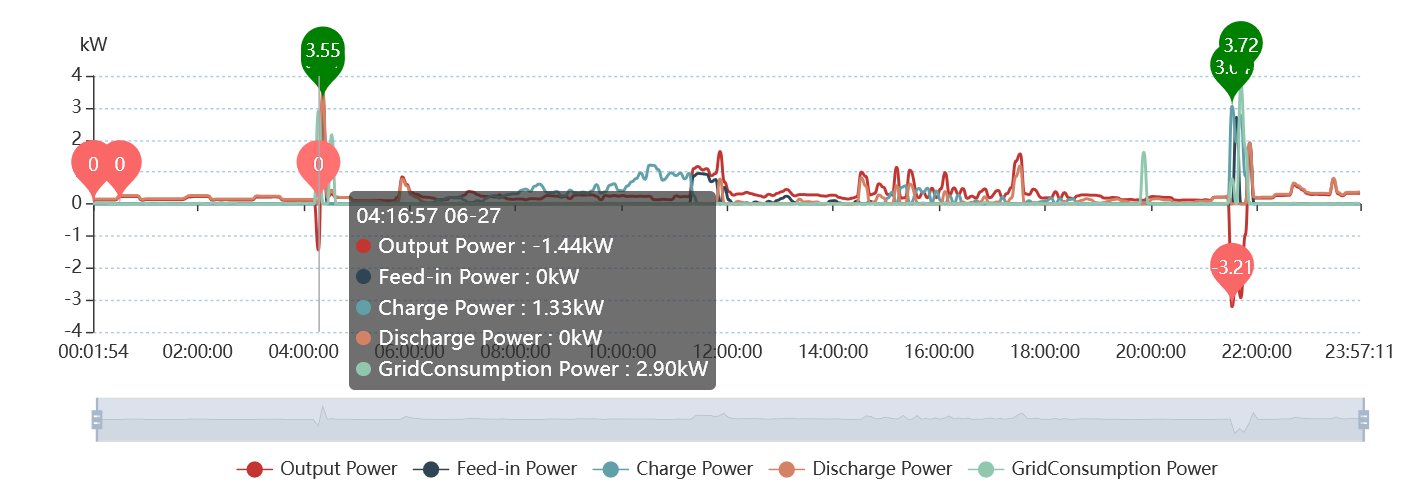 This is my first post here and I'm hoping someone might know what this is. I had my system installed at the end of April. All seems to be working fine, but I've noticed that just after sunset each evening that there are some quite loud clicking, humming and arcing sounds coming from the top right rear corner of my inverter. Looking on the Fox ESS Cloud website there are some crazy spikes where I'm importing, exporting and charging the battery during these times. I can also see similar patterns just before sunrise in the graphs too, but that's too early right now for me to check if the same thing is happening. Here are a couple of screenshots: